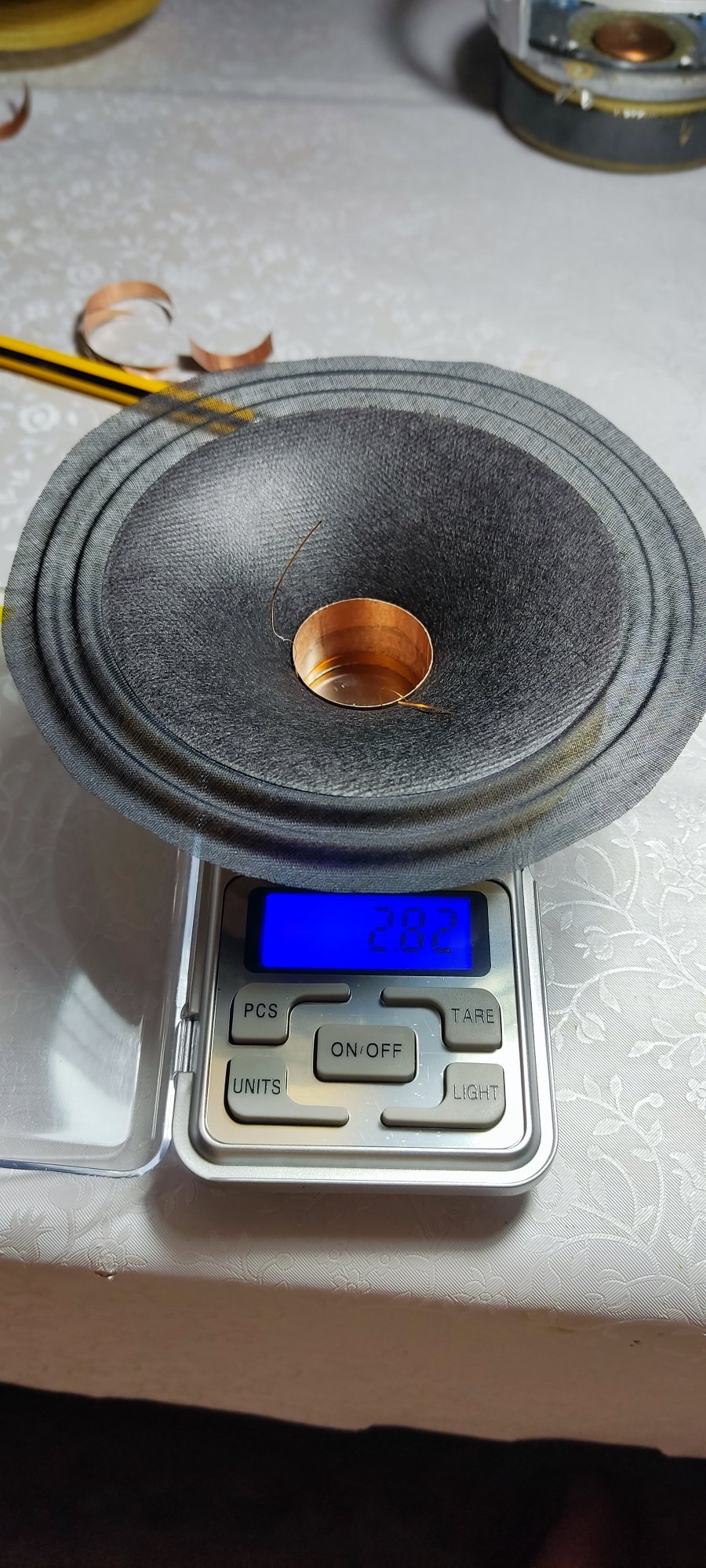 Я тогда не взвешивал, понятия даже не имел. Но АЧХ все таки снял, с пиком на высоких частотах, звучит так же, пик слышно. Не знаю что получилось, можете сами дать определение.