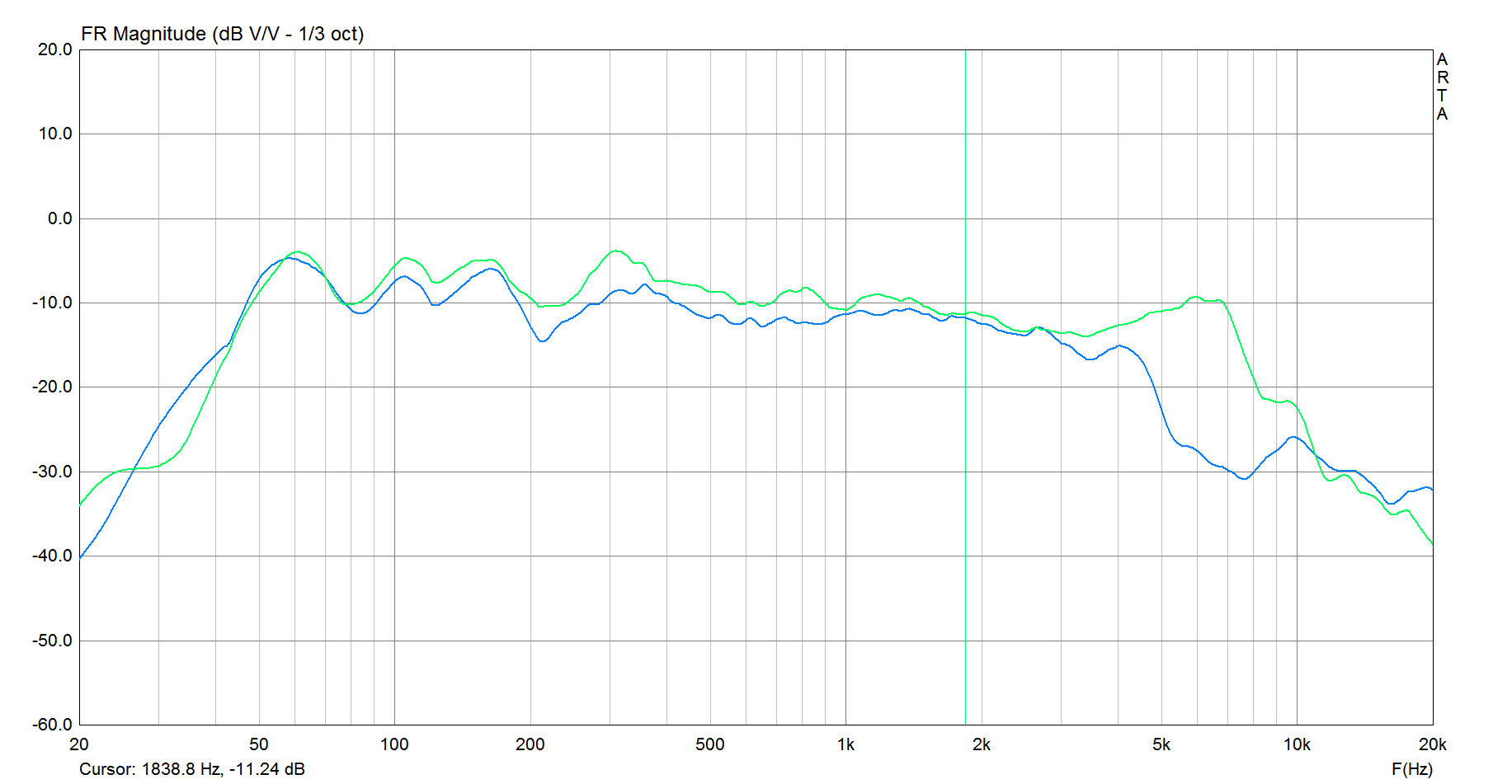 У вас есть микрофон, в упор к динамику сами прекрасно увидите реальное поведение динамика , разумеется, без влияния искажений огибания, который проявятся на дистанции.