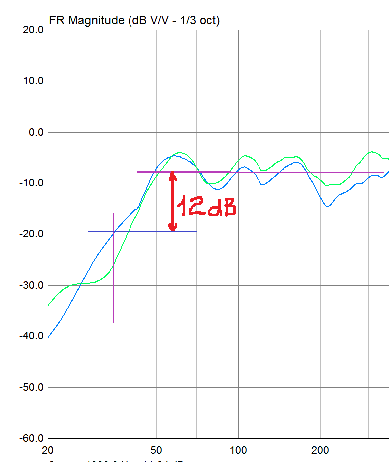 35 Гц по -12дБ, всё честно. Ваш график? А от 60 Гц все -15дБ,