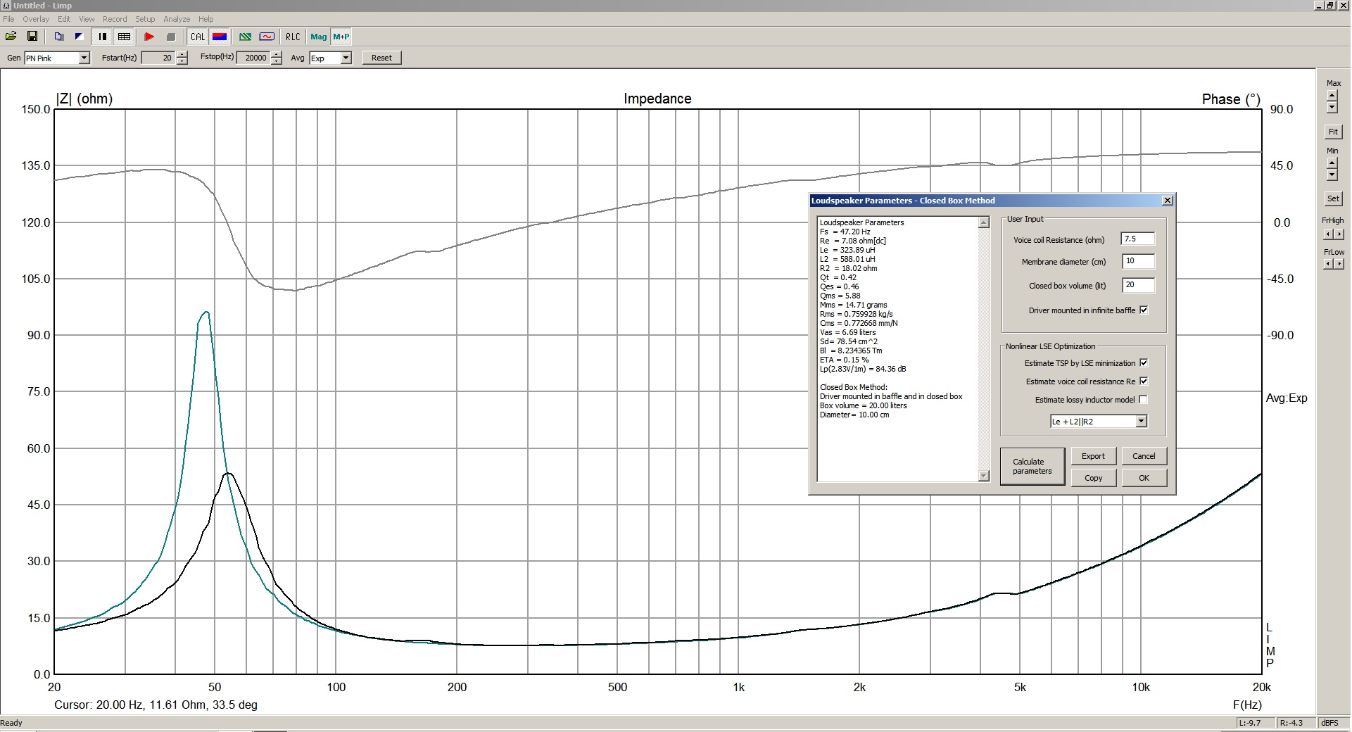 И если на одной картинке у нас есть ачх в упор и z -кривая, то можно оценить добротность динамика в ящике с заглушенным выхлопом и с открытым, понять, где находились и к чему пришли.