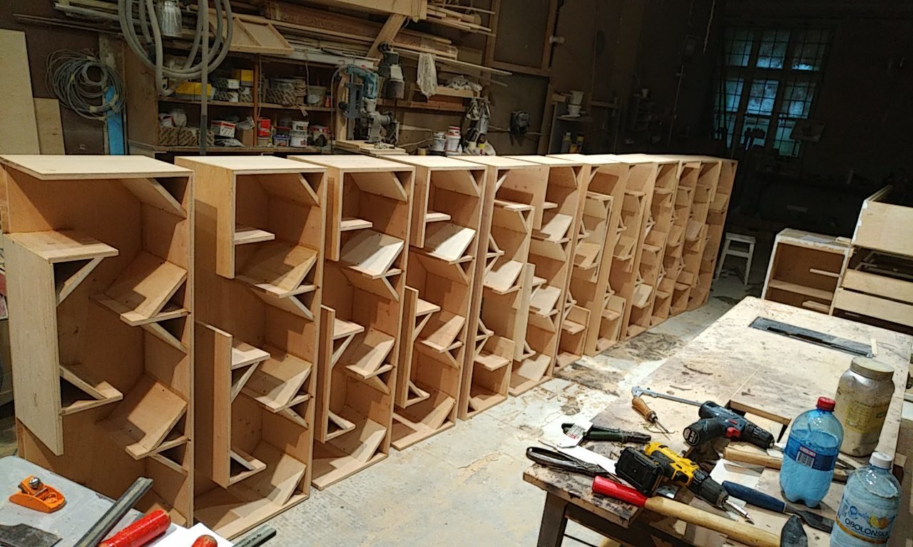 Только на фото пятнашки с десяткой, а надо восемнашки с пятнашкой и пятнашку прорезью отделить. И щиты на ножки поставить.