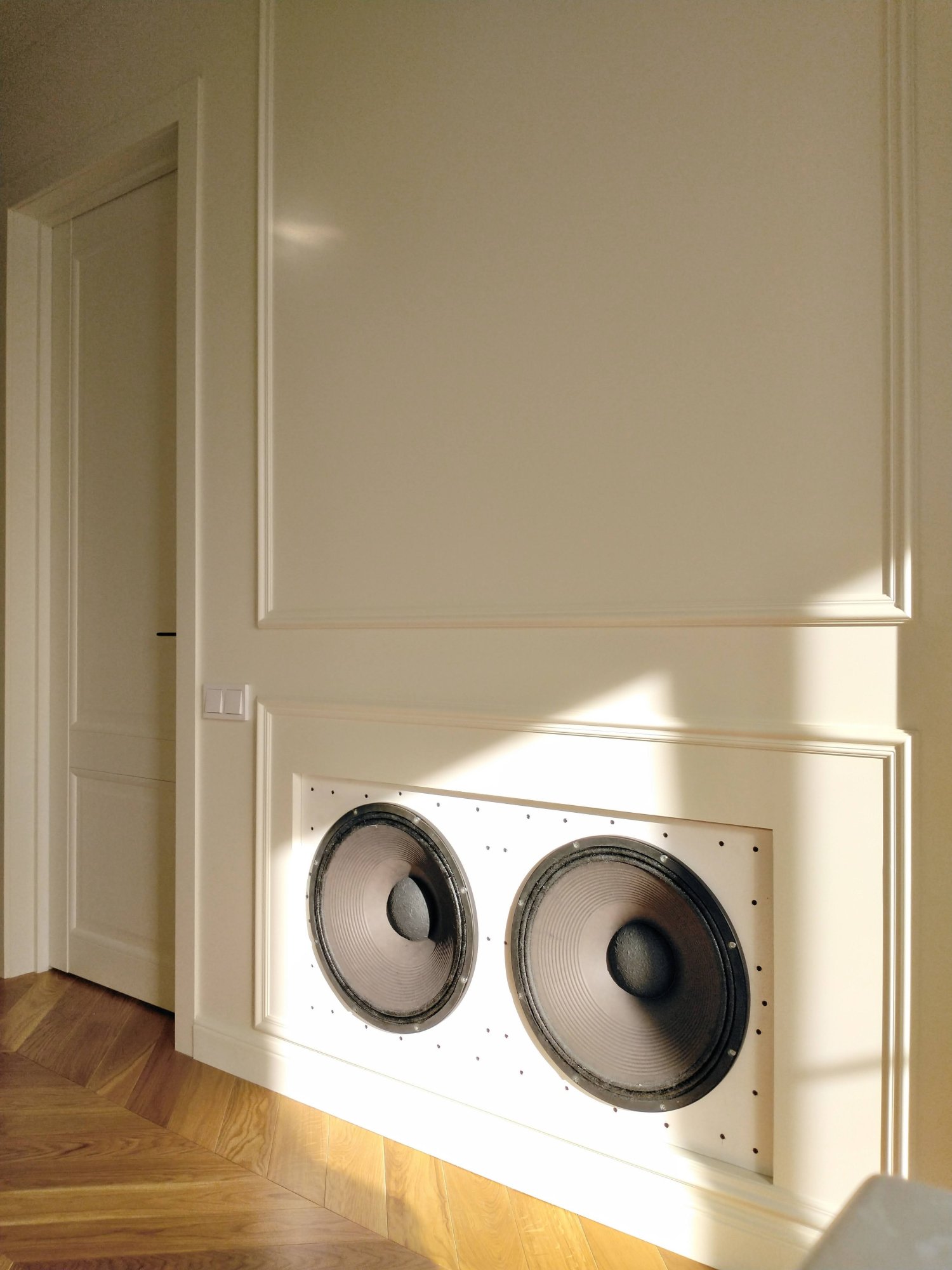 А лет 20 назад в МСК в высотке на Котельнической набережной у меня был демозал 40 кв.м. на 7 этаже. Над и под ним были офисы. Я сдуру прикрутил два ящика по 350 литров каждый к несущей стене (сверху горизонтально между полом и потолком. В каждом стояли по 2 восемнашки профи, вроде от bms. Трясло весь дом с 1 по 8 этаж ... (Это пристройка между основным зданием со шпилем и длинным домом вдоль Москва реки. Там ещё две арки для проезда во двор и парадная между ними. Вот в этой парадной и был вход.
