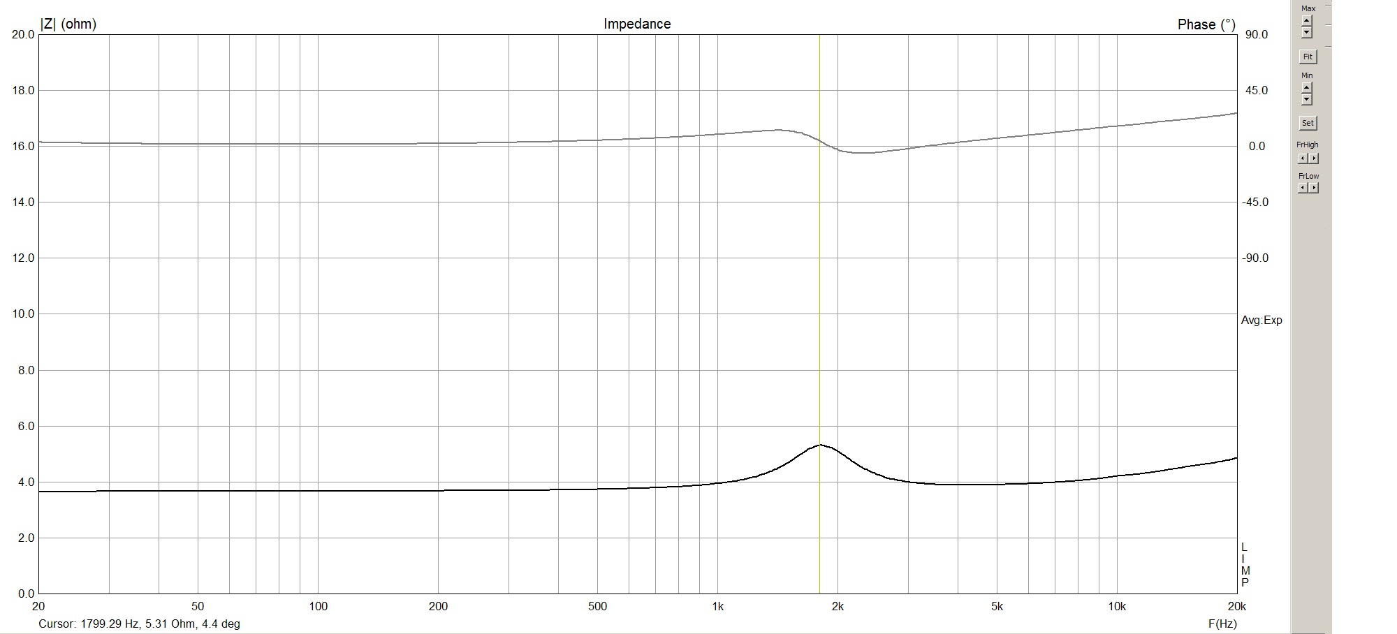 По ряду причин, график импеданса пищалки менее значим чем у басовика. Потому что с фильтром первая не должна работать на своём резонансе, а для басовиков область резонанса очень важна.