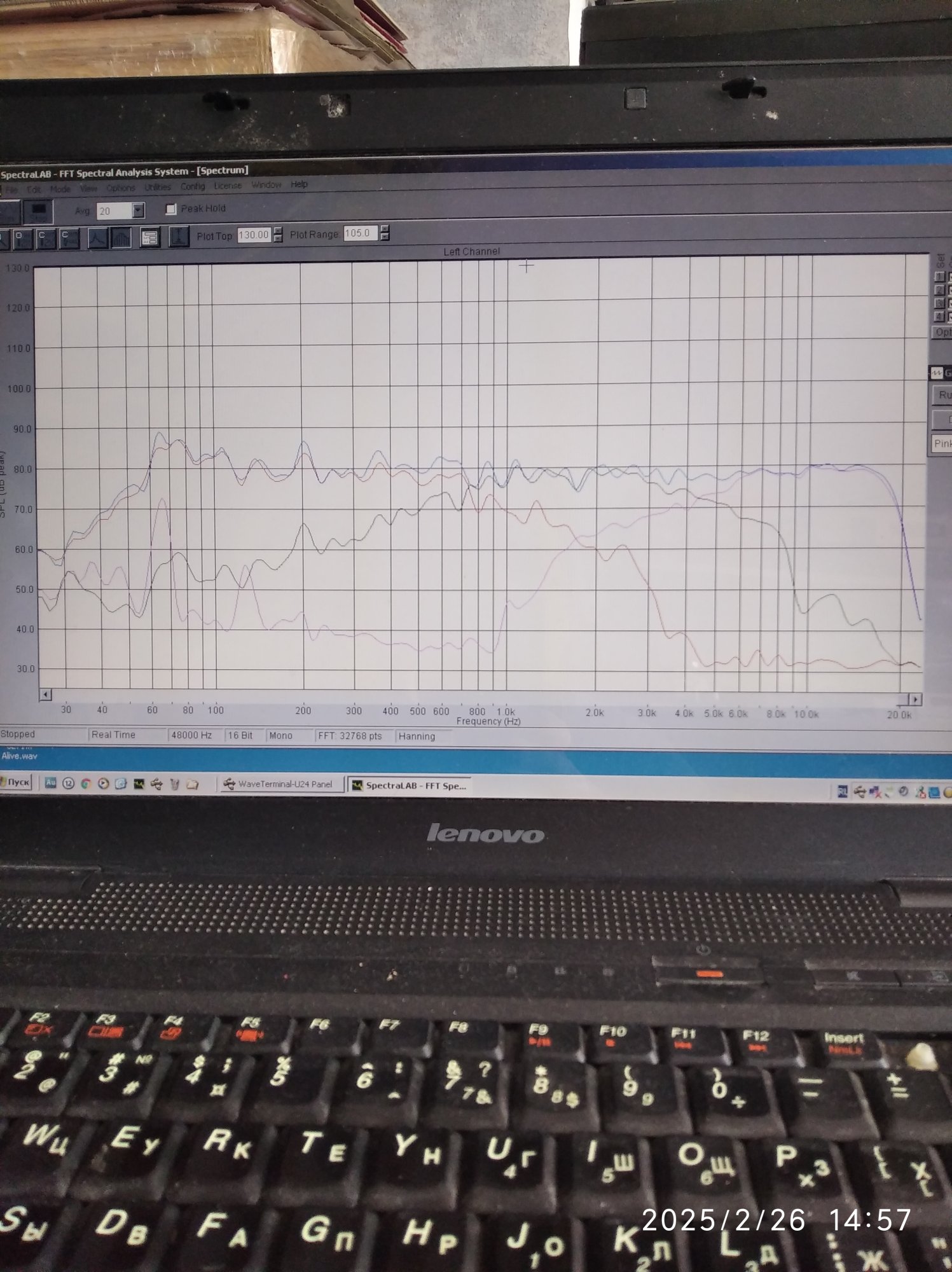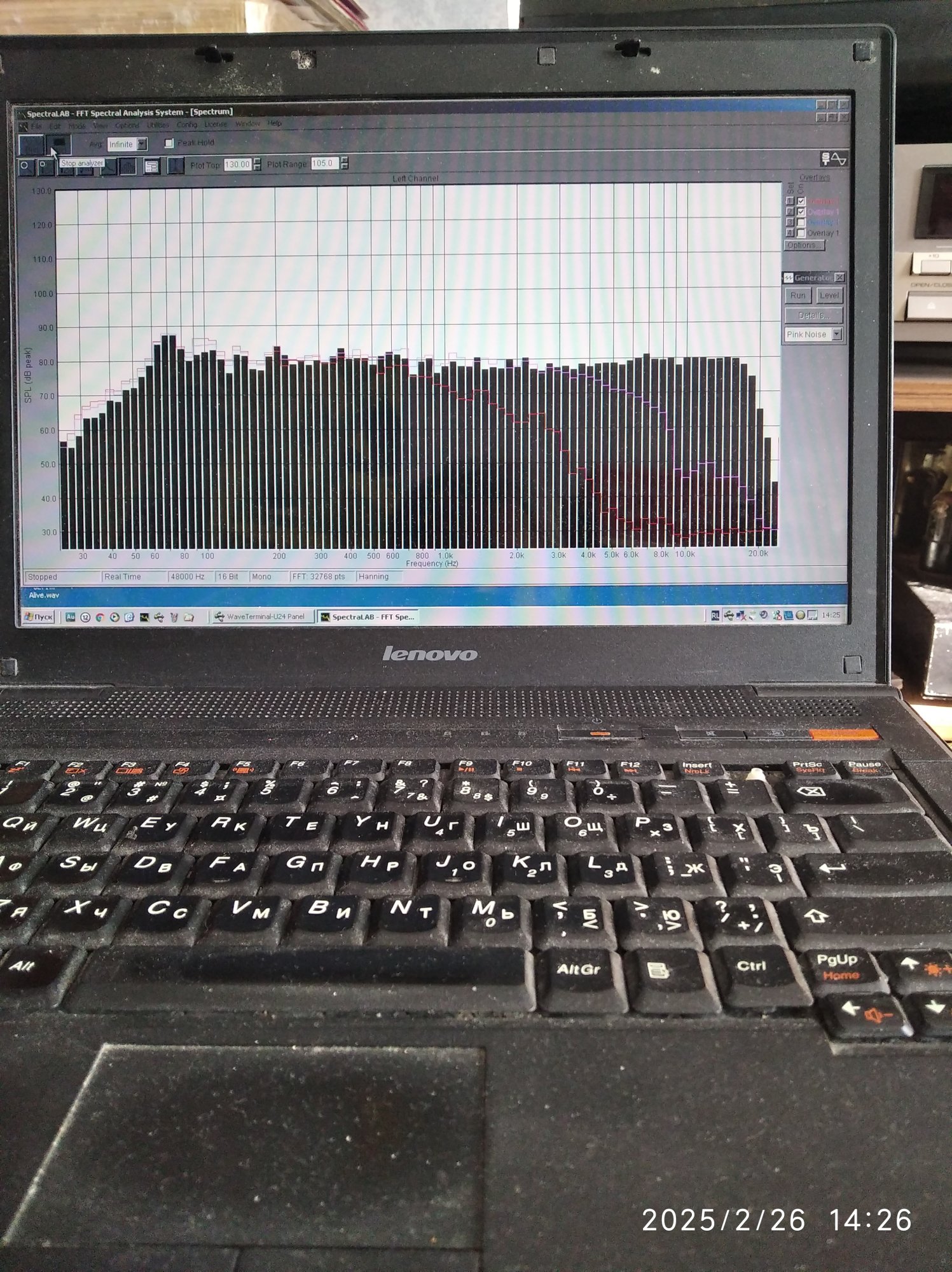 При измерениях шумом, всегда его слушаю, хотя слуха нет. Звук 2ГД-36 картонный, звук шёлкового купола мягкий, но не глухой, так и должно быть. Это большой плюс.
