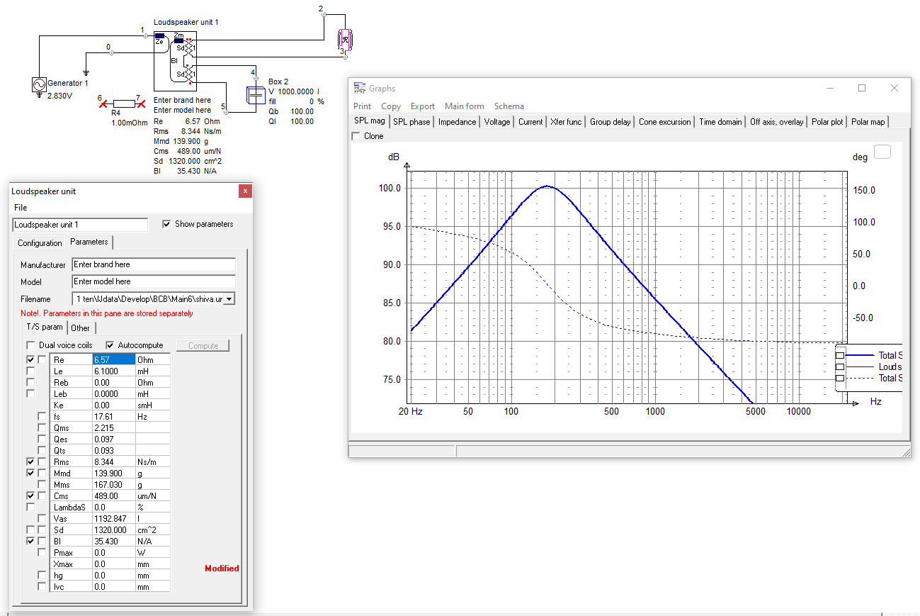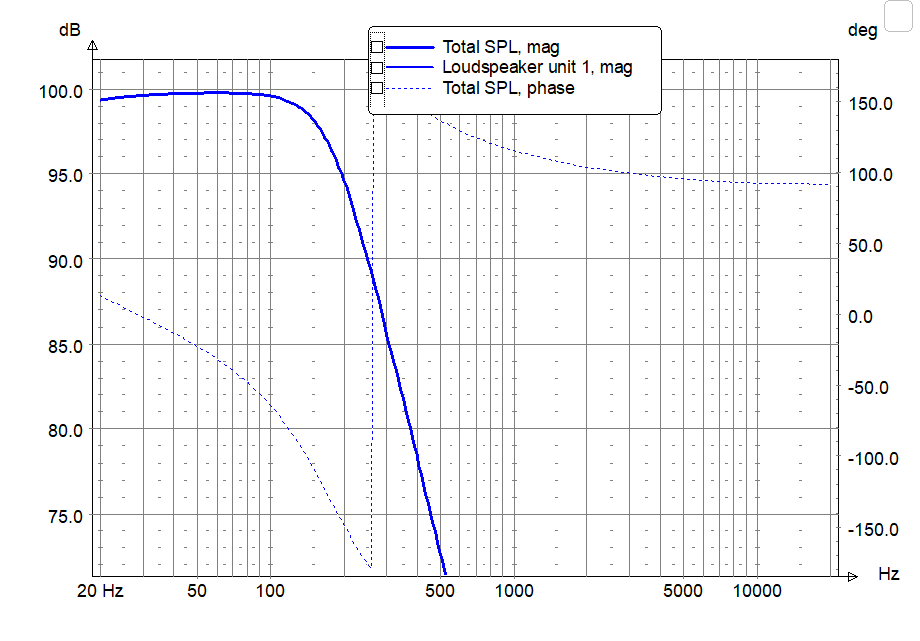 С горем пополам скалькулировал параметры как сказал (Комелев К) виртуальные, всем известного динамика с добротностью 0.08, максимум получилось выжать полную 0.093. Берут сомнения меня, что если бы выжал таки 0.08, то этот Эверест превратился бы в идеальную полку 20-200