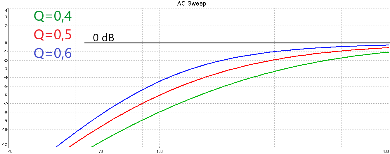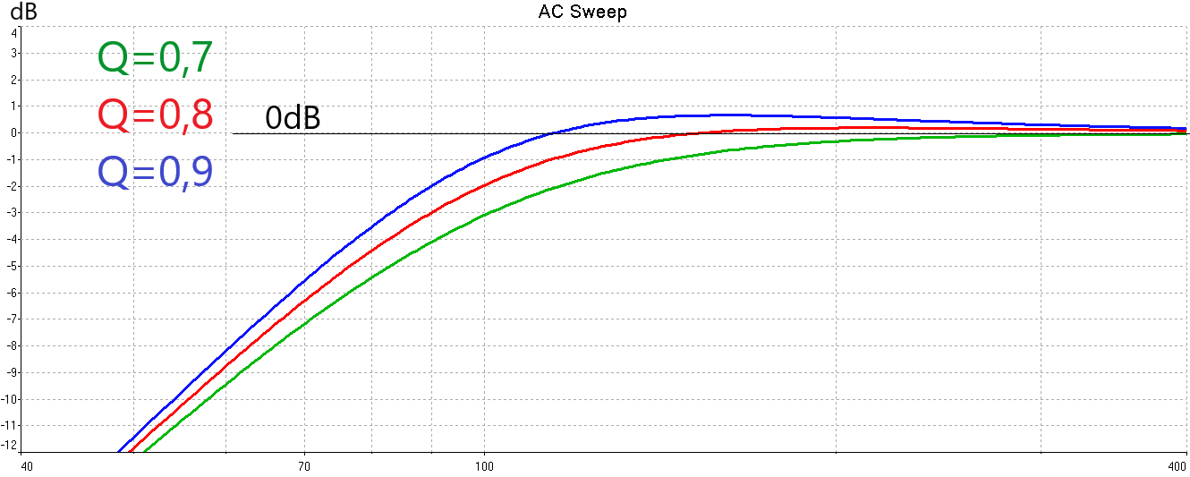 Качественный прыжок наблюдается при переходе значения добротности от 0,7 до 0,6. Уже при Q=0,55 о призвуке говорить грешно. Итого, оптимальная добротность ЗЯ корректируется как Q=0,55...0,75. Меньше 0,55 смысла нет.