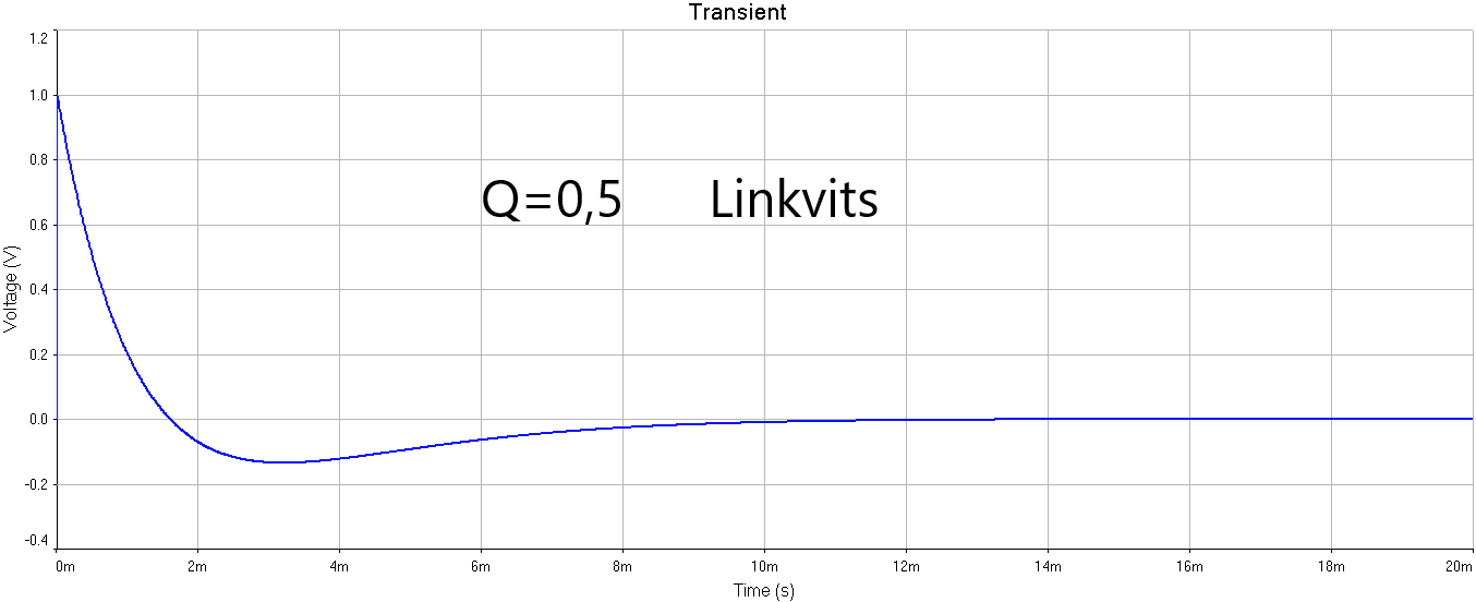 Симуляция импульсной характеристики системы второго порядка крупным планом. Частота резонанса 100 Гц. Можно смотреть мультиком.