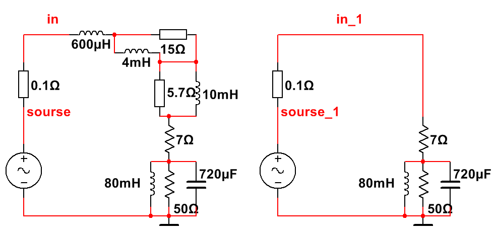 Симуляция влияния индуктивности ЗК - соотношением токов в активном сопротивлении ЗК в схемах