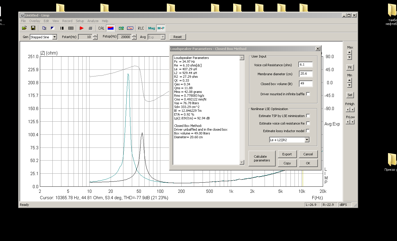 Когда еще говорил - измерьте динамик, спорите о преимуществах легкой подвижки и мощного мотора, а сами слушаете обычный - с добротностью 0,5. Да еще резонанс, наверное около 30, т.е. и мотор обычный. А вот мой - обычной конструкции, с длинной катушкой, но энерговооруженность побольше будет