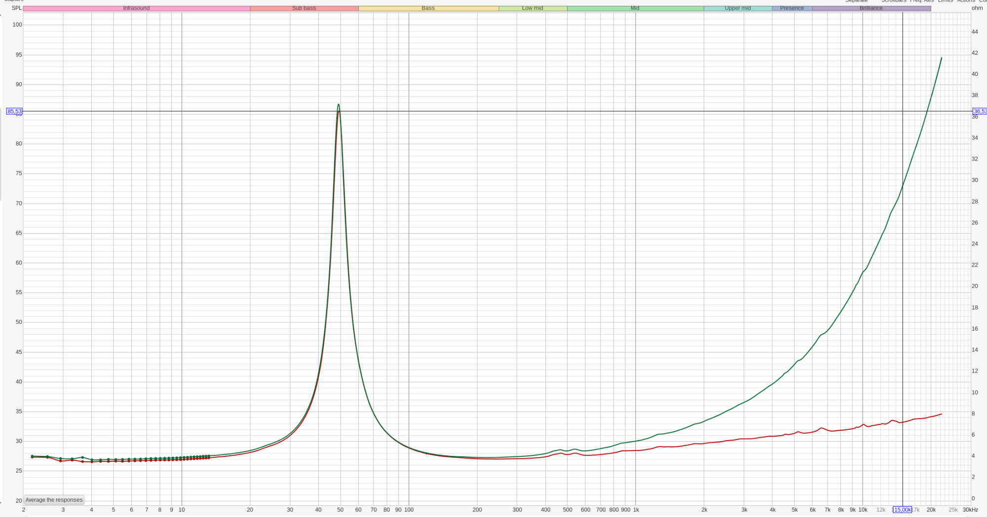 Ага....Судя по горбище на 52 Гц аж в 8 дБ,вы смотрите ачх наверху,упершись микрофоном в динамик.А это не правильно.Верхушки смотрят на дистанции хотя бы полметра,остальное лажа и не принимается.