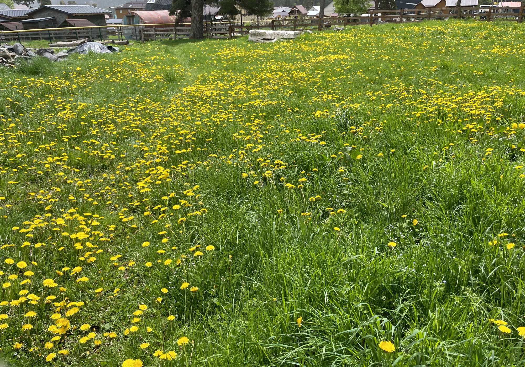 У нас в этом году тоже можно сказать моря одуванчиков ,оказался сегодня на одном с телефоном , портки в желтый цвет от пыльцы покрылись.В этом году обилие одуванчиков , обычно меньше
