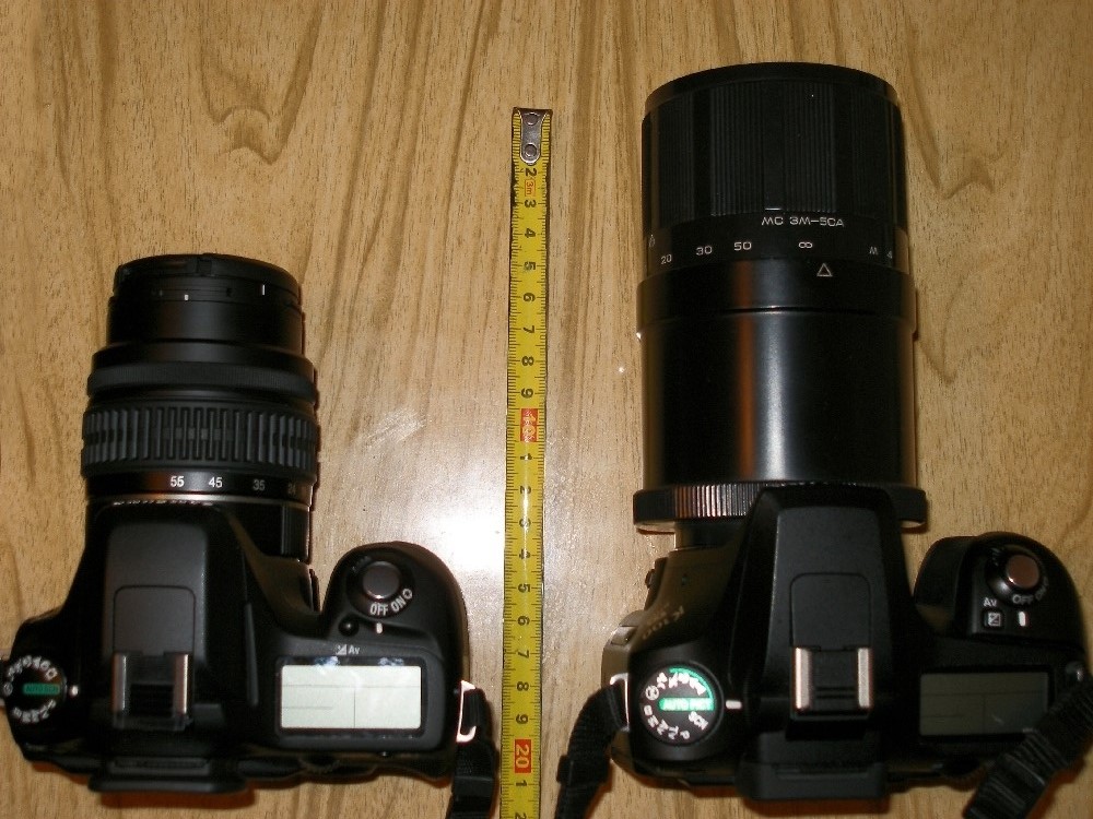 Вот он у меня на Пентаксе ...с ним всего размер 200мм.
