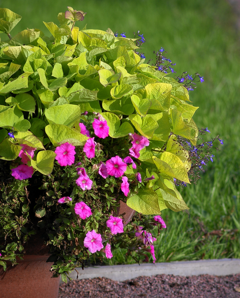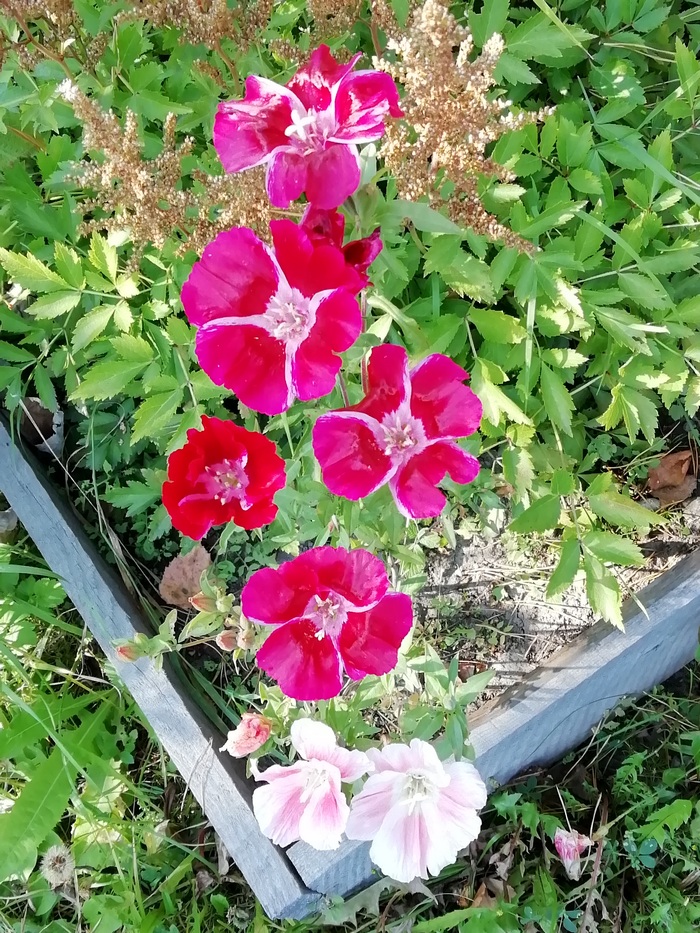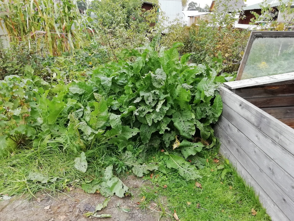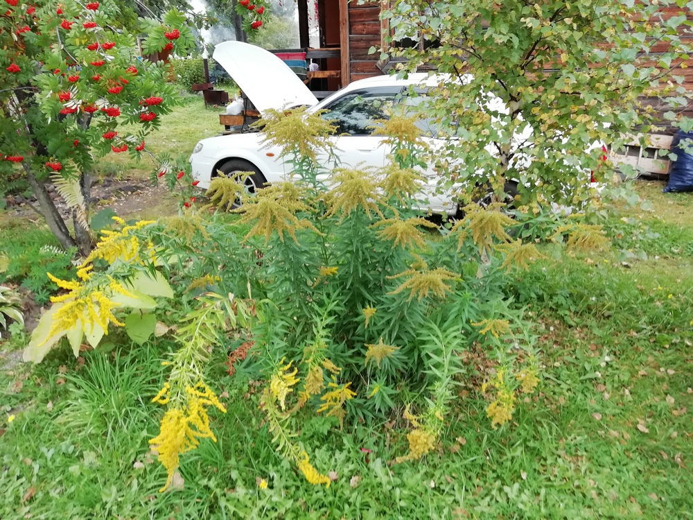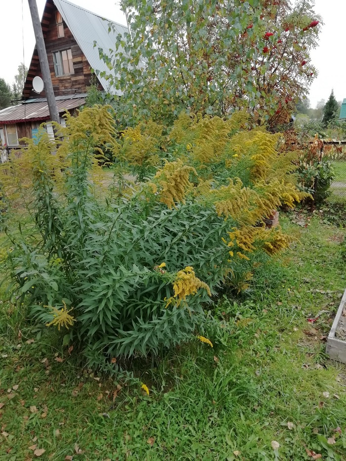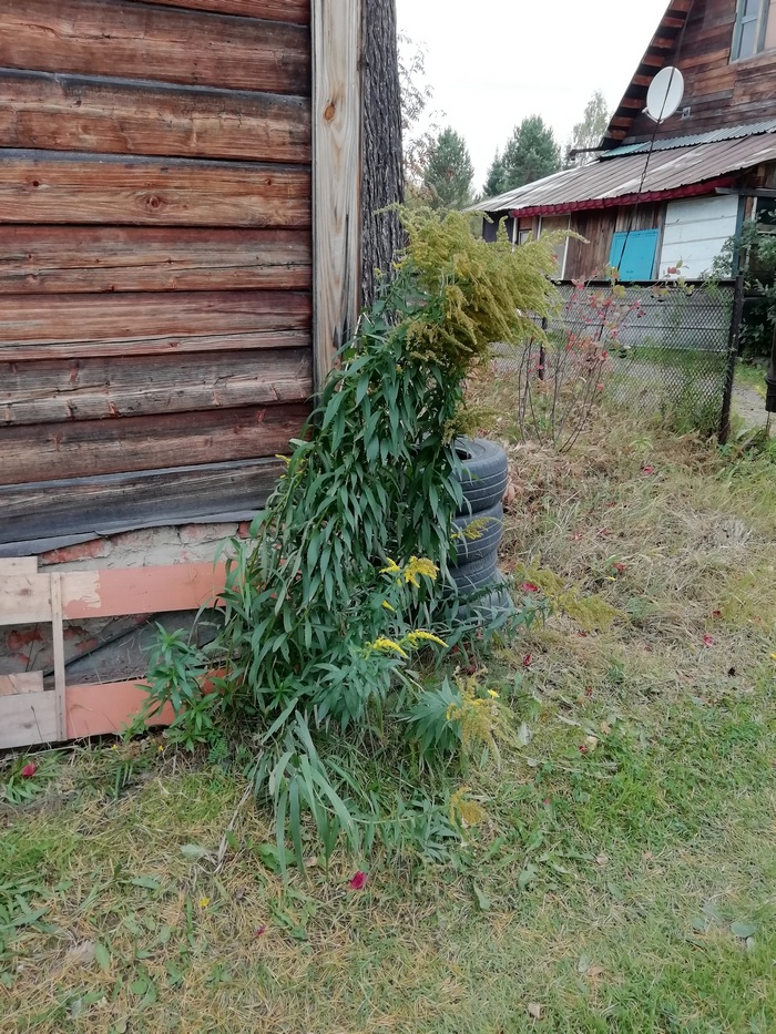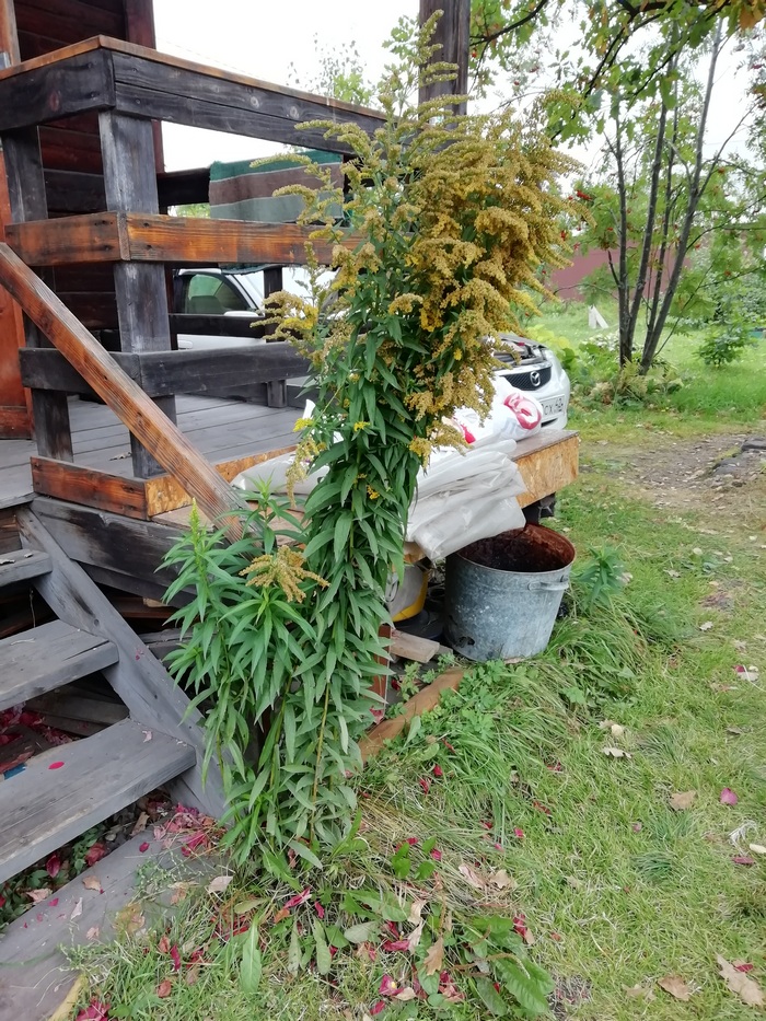 Чуть правее - чистотел. Растут сами по себе возле крыльца. Её полно по даче. Место есть. Чуть больше восьми соток.