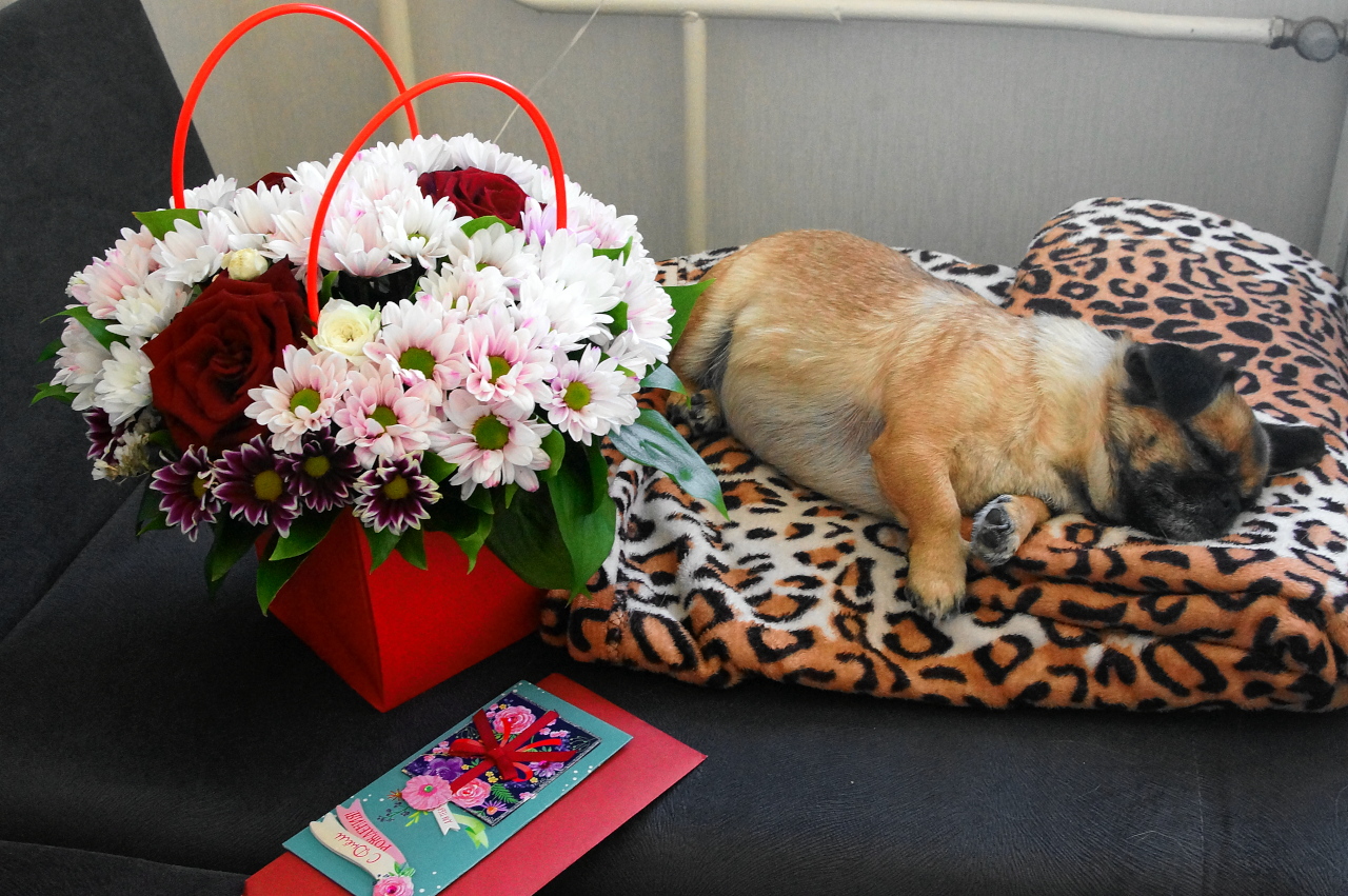Немного поохраняла подарки и после вкусной еды на боковую... :)