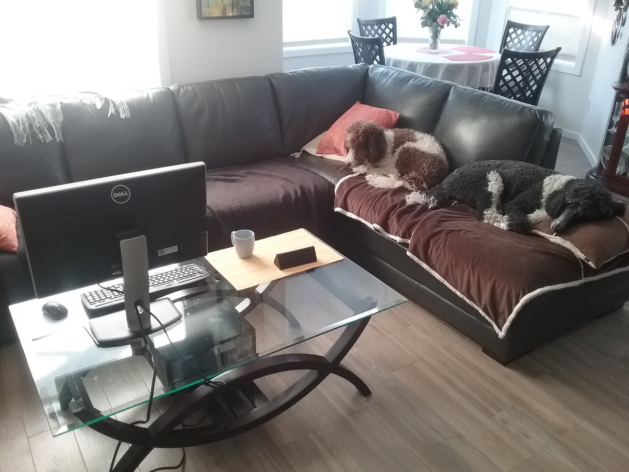 Масть удивительно совпала с покрываломпся замаскировалась, чисто под цвет дивана. Мимикрировали. ))))