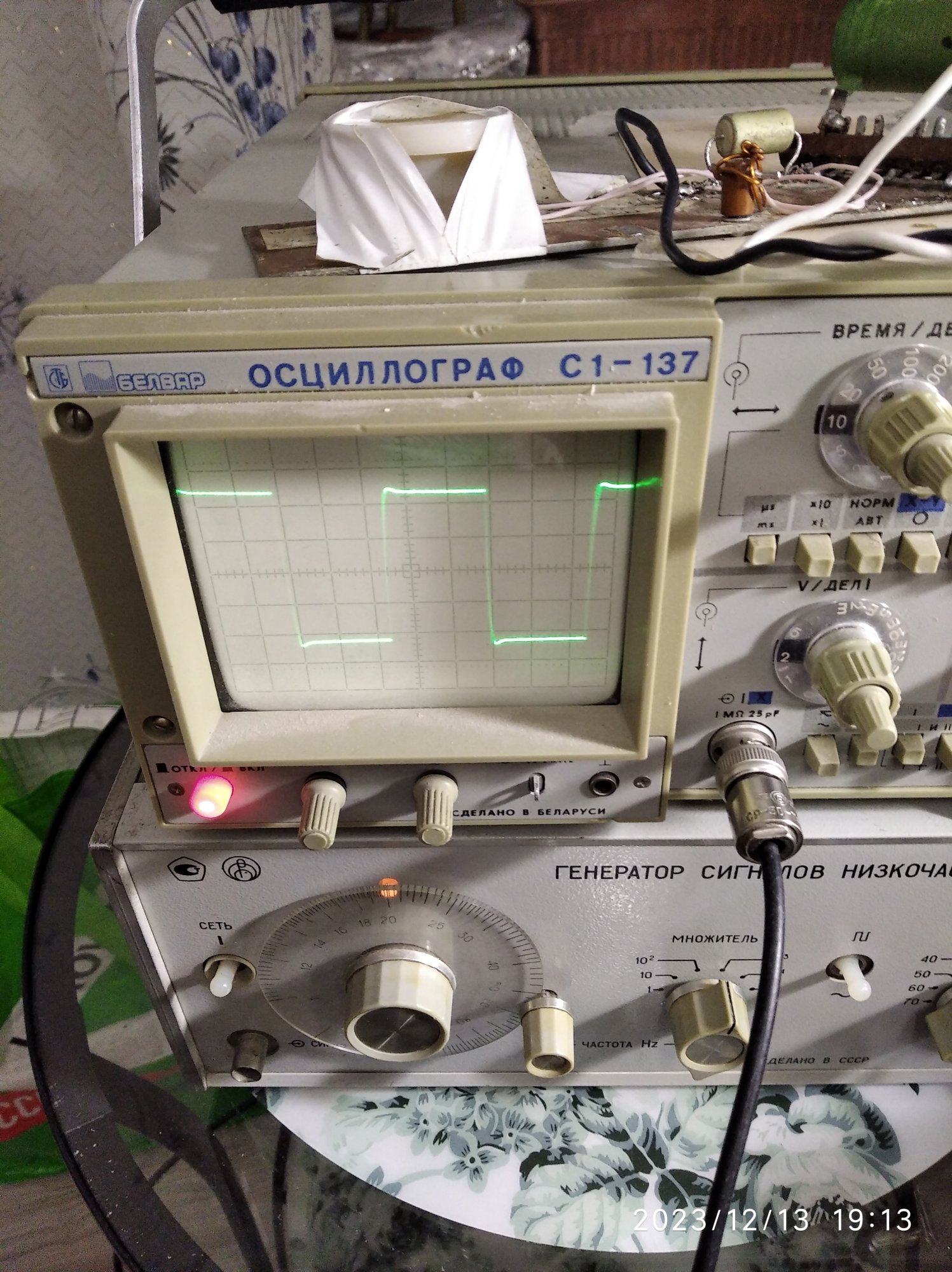 Собственно, это почти макет, проба. И он всегда держал ток покоя, пока не подключался входной транзистор, после чего схема начинает плыть. Идея разорвать эту позорную связь, оставить выходной хвост как есть, сигнал у него красивый, симметричный, осталось добавить усиления и входного сопротивления. И обратите внимание- ни единой коррекции, меандр -заглядение.