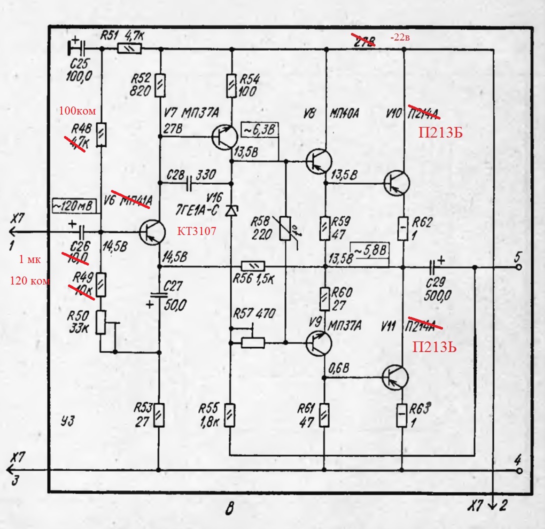 R51 С25 нет, R49 по режиму подобрать, получилось ~120 ком, R50 убрать