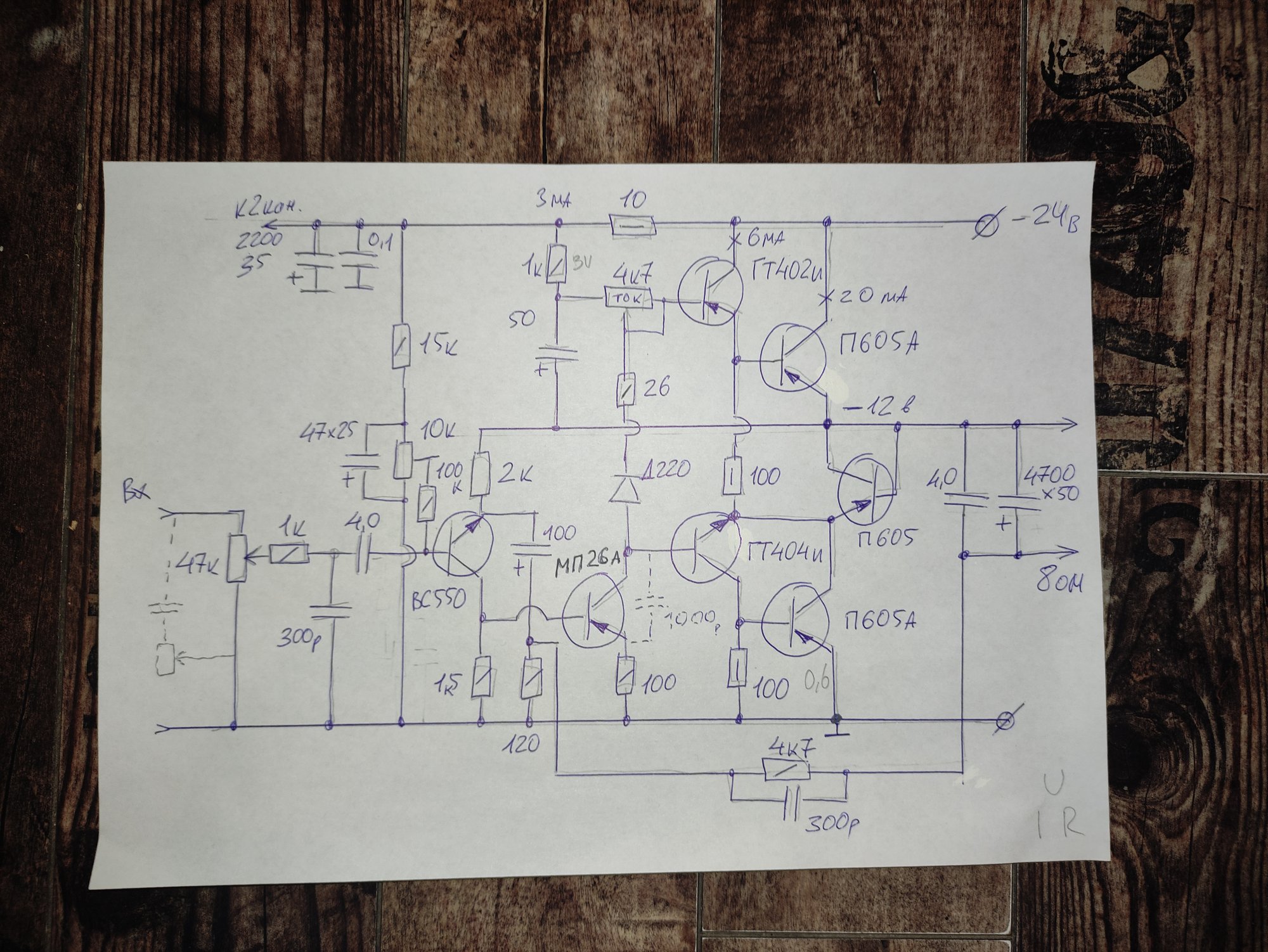 Очень хочется уже серьезно заняться зимним германцем от АБ, но все свободное время отнимают УМ для наушников и германец из Радио 7 за 68г. Вот такая, в итоге, у меня получилась схема по мотивам усилителя Зыкова на П605. Надеюсь все правильно?