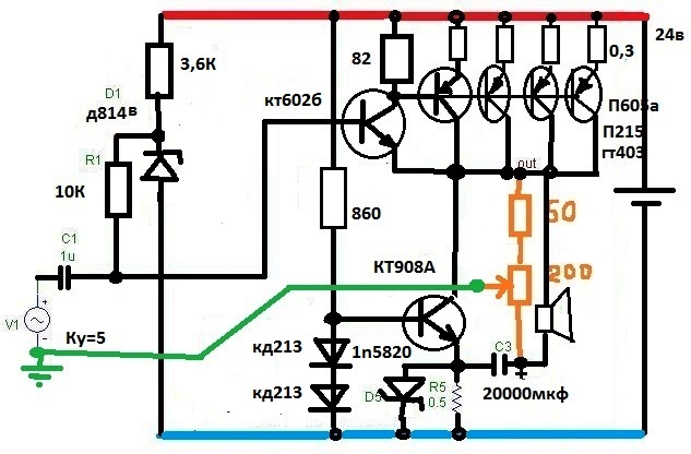У тебя схема из трёх транзисторов которая паяется за 10 минут. СХема с ОУ паяется 15. Трансформатор .. Нахрена он там вообще нужен? Чтобы что? Чтобы плодотворно истратить деньги и время получив.. ровным счётом ничего.с трансформатором никаких ползунков нет,он повторителем работает