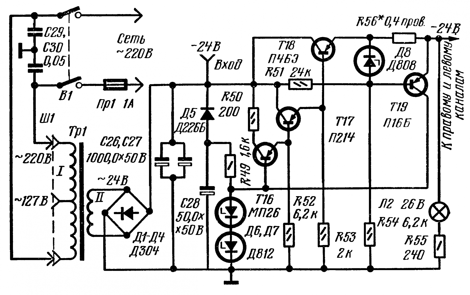 Проблема в том что питание там двухполярка плюс-минус 22 Вольтафигню не надо писать . Мощник в Маяке полноценный, начало его - регулятор уровня, туда сигнал подается во всех режимах, не только записи. С26 - точка входа , куда даем сигнал от чего угодно, крутим ручку, ждем получку.