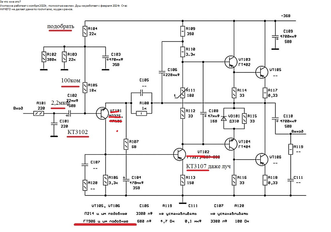 боюсь спросить, а куда вы включите минусовку, если один канал у вас занят под гитару?Осмотрел свою Вегу 101, которую брал за место той, которую отец выкинул семейную когда мама заболела, экземпляр под разбор - тут выходной каскад на п217a