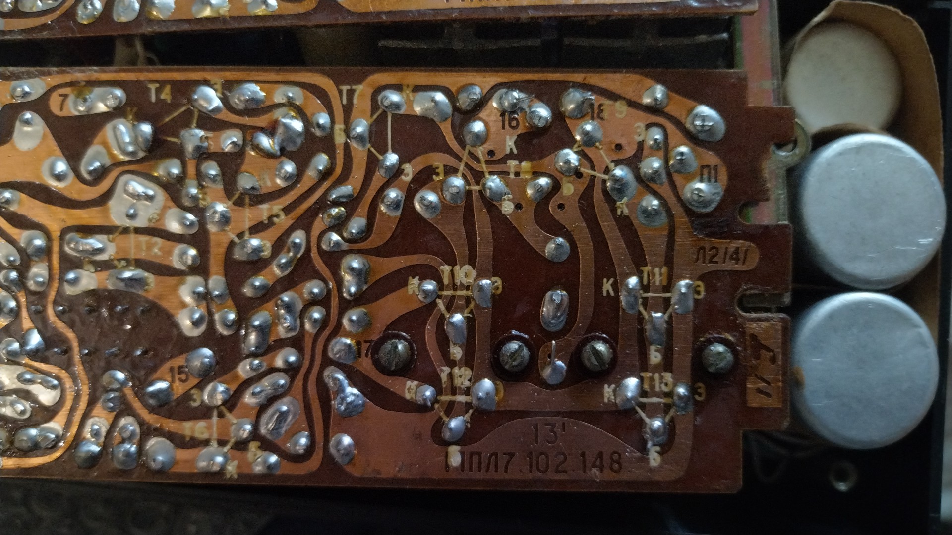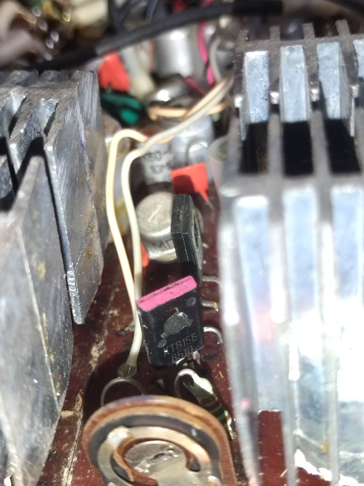 Начало провода общей коллектор кт815 и блока гт402 -404 под радиатором точка 16