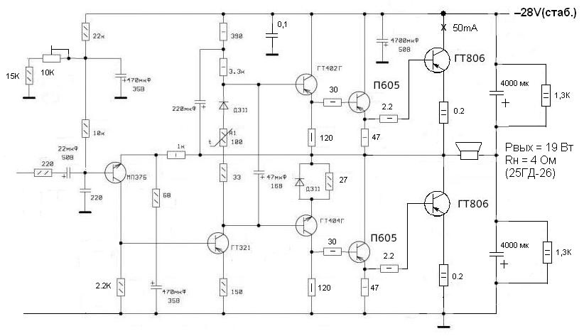 Непонятно а это ответ на что?Копайте глибше. Вироби, в яких були підсилювачі з виходом на ГЕ, випускались масово в Європі до початку 70-х років минулого сторічча. Ось яскравий приклад. Правда, всього лише 2*15 Вт.I'm_sorry