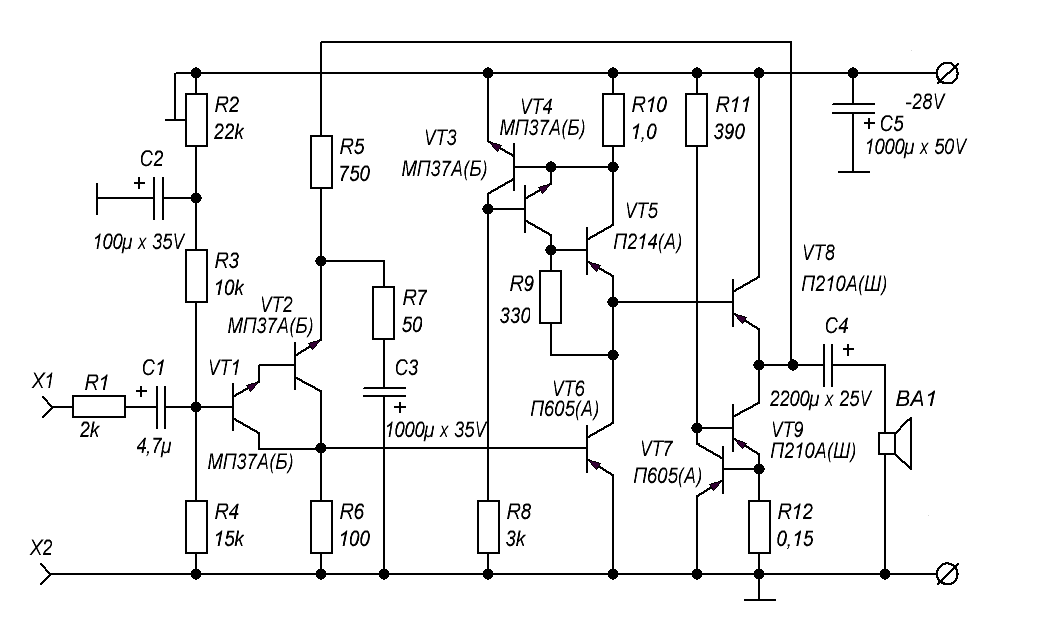 и усилитель. К нему ближе усилитель Делепиано на 3 или 4 транзисторах.