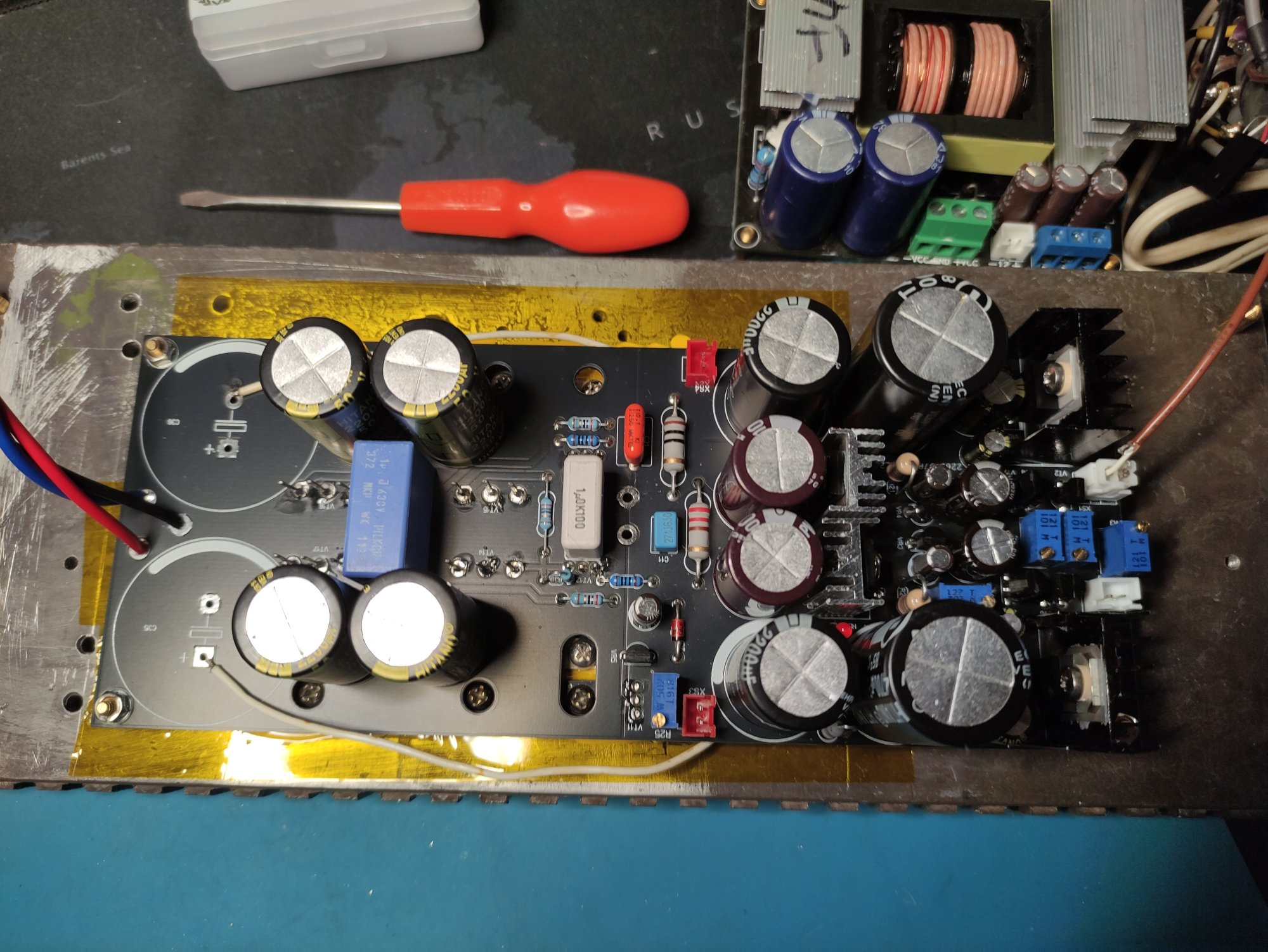 Всё правильно, ставим, что есть в тумбочке.Я думаю, что тут какая-то путаница. Зачем в звукачах класса А или АВ эти массивы конденсаторов, конденсаторы с низким ESR? Нахера? Кто-нибудь тут вразумительно может объяснить? Способность мгновенно отдать большие токи? Малое внутреннее сопротивление? Да какие токи текут через конденсаторы? Ну максимум ампер-другой. Да у вас нагрузка 4-8 Ом. Зачем вам миллиОмы на конденсаторах? Теперь про емкость... Да вы прикиньте, какая должна быть емкость конденсатора, чтобы накопить энергию, достаточную ну хотя-бы полсекунды запитывать усилитель для воспроизведения одного (!) удара большого барабана? Да это ж охренеть какая должна быть емкость! Источники питания надо делать нормальные, мощные, способные отдавать большие токи, а конденсаторами вы тут не отделаетесь, даже заполнив ими весь ящик для усилителя.