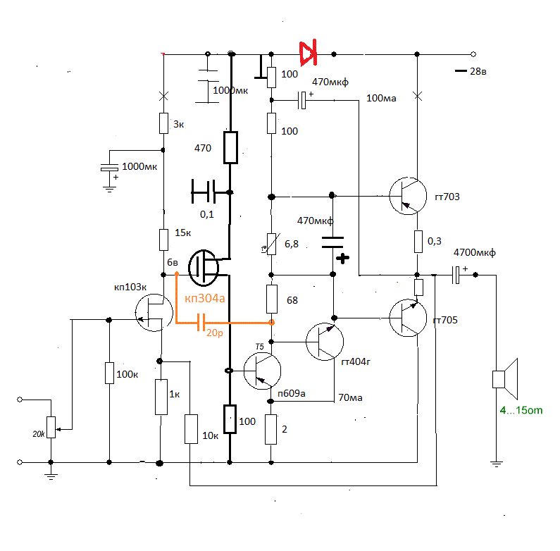 германий тут при том,что вч будут хорошие у него с этой приблудой,тк ВК будет на вч 10....20КГЦ работать на нагрузку 40....80ом это при разделе 2,6кгц при более низком еще выше