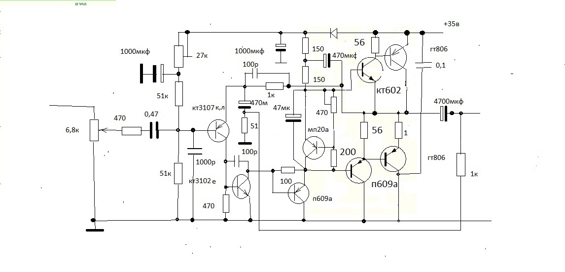 А ,что если взять УНЧ Бати-Середа,который усовершенствовал Александр Петров (в соседней ветке) И выходные в нём поменять на ГТ806. Естественно при этом оставить все кремниевые транзисторы,только сменить их на противоположную проводимость, а также поменять полярность электролитов и питания и диода? Я думаю получится супер усилитель,как по измерениям ,так и по звуку. Кто что скажет?