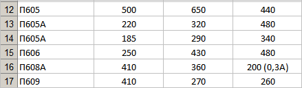 Какая физическая величина содержится в колоночках "B", "C" и "D"?Смотрим таблицу выбора транзисторов https://docs.google.com/spreadsheets/d/11jg_0LT8Mzj5I7pGDo3VoeTAm25OnfZDsgxzjVrPnaU/edit#gid=0