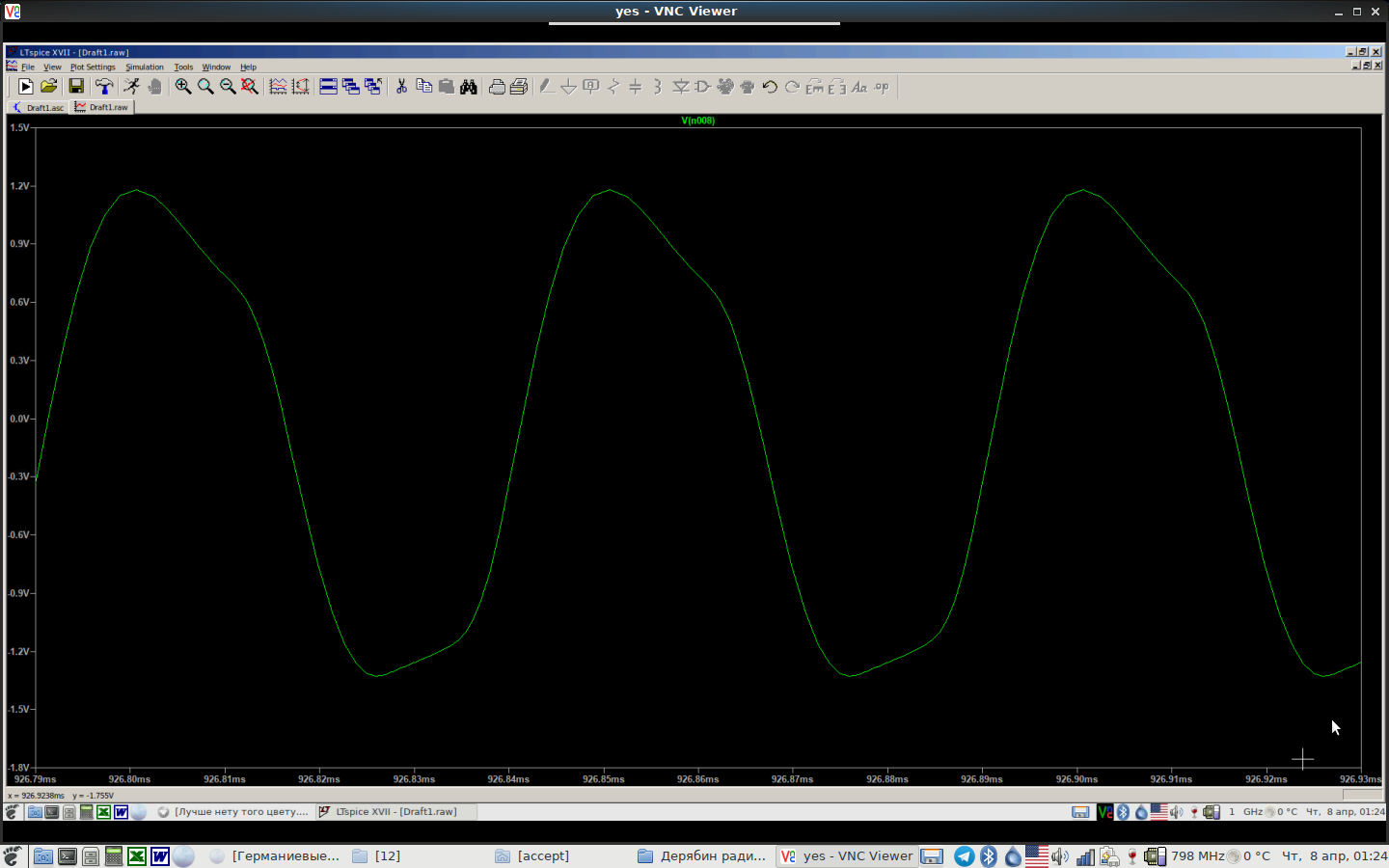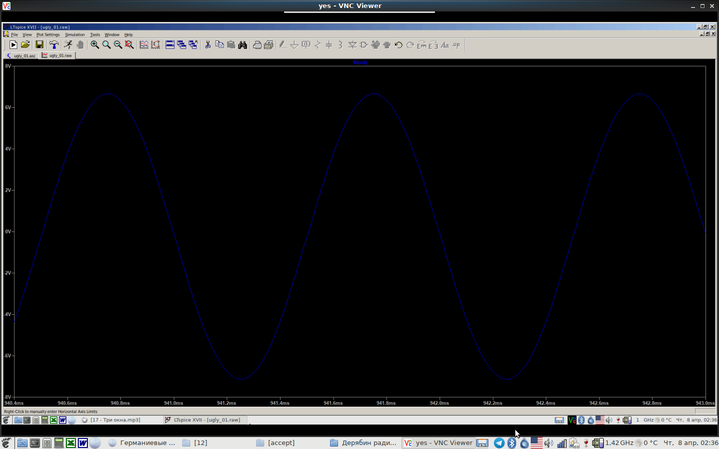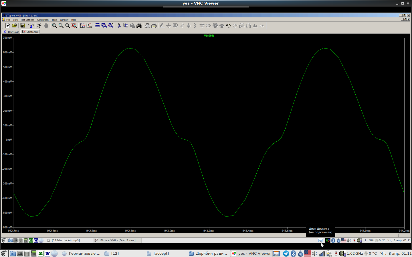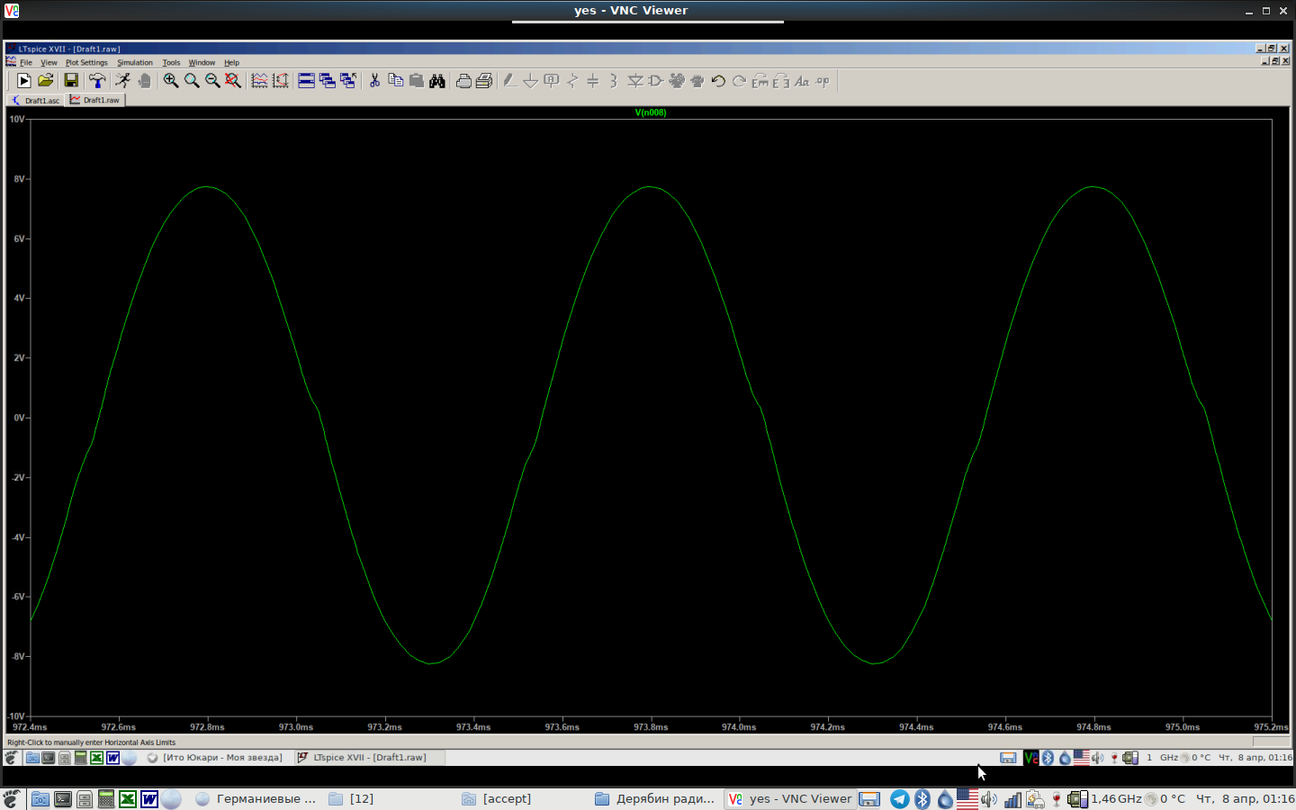 Как результат, при амплитуде на входе 0,45 В получил на 8-омной нагрузке амплитуду 0,6 В (вместо 4,9 В в онлайн супер-пупер симуляторе), и притом с дикой ступенькой: