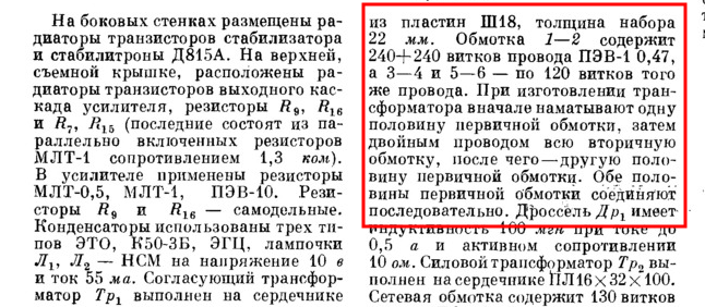 Согласование межкаскадного транс-ра очень простое при этом методе. Только "трифиляр" мотается не 3 проводами , а "сколько надо по расчету" Потом комбинацией соединений обмоток получаем и коэф-т трансфомации и всё остальное.