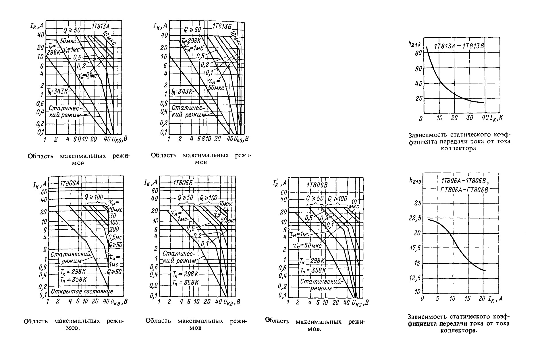 Предельные напряжения коллекто-эмиттер у ГТ806Г (1Т806Г) 50 В, что может быть критично, у 1Т813А этот показатель в два раза больше. Все остальные буквы более высоковольтные.