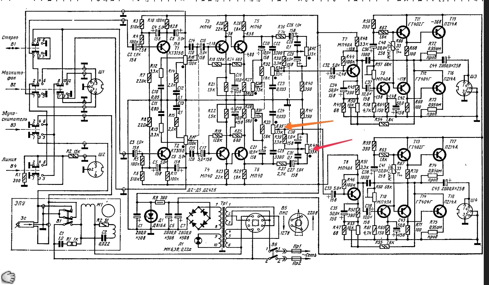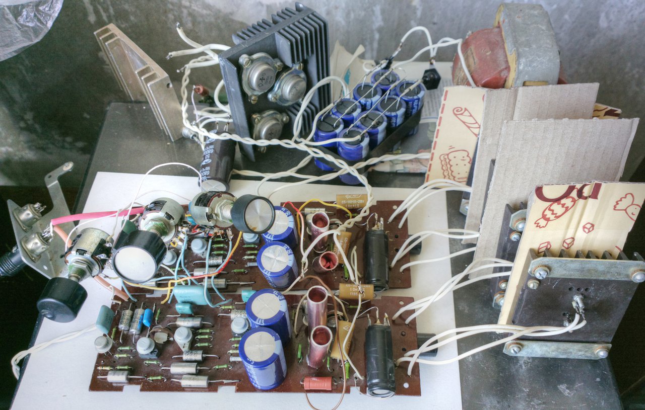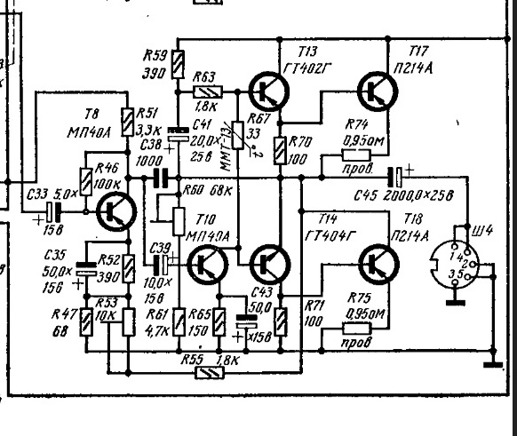 Последнее изменение в схеме - резисторы в эмиттерах предоконечников уменьшил до 39 Ом, а-ля "Электрон". Как понимаю, это уменьшит вероятность теплового "разноса" оконечников. ГТ402/404 стали греться чуть посильнее, но не суть."VoboC2-Ufos.jpgzxPkNgUx9gk.jpg