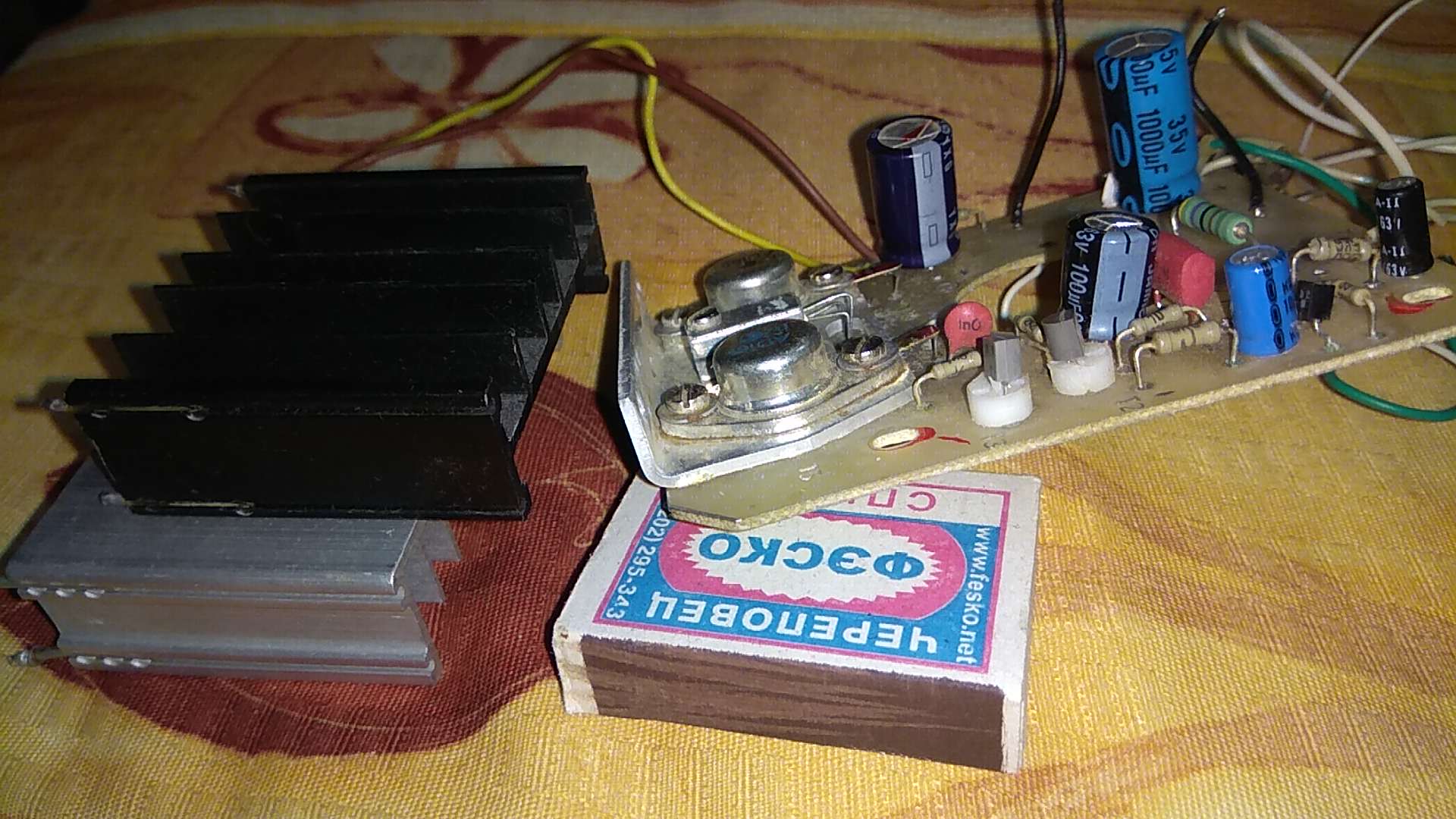 Тщательно зашлифовать уголок и радиатор (зерно до 1600-2000). Даже заполировать. Термопаста между ними при сборке. "Шляпы" транзюков зашлифовать и посадить на них люминевый уголок/профильную квадратную трубу и т.п.
