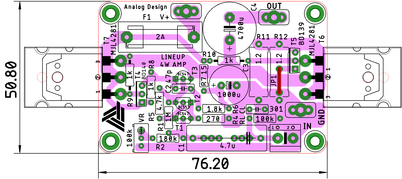 Со слов собравших звучит волшебно. Правда это не германиевый. Выходные транзисторы могут быть 2SC5200, MJL3281 или MJ21194. 2 варианта монтажа на плате.
