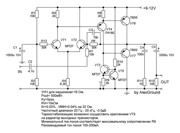 Даже на П605 выходной каскад в режиме А по Линсли Худу и тянул полосой дальше и сигнал куда чище, чем АВшник с куриным током и квазикомплементарным выходом на тормозах типа МП21 -МП37. Взялся повторять АВ-шник, плюнул. Худ удачнее во всем.