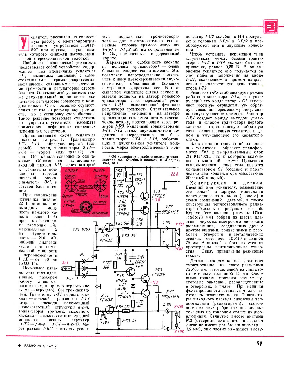 Из всех представленных здесь схем -самая лучшая по звуку (причём значительно) в посте 2042 ,схема на трёх транзисторах ,но нужны транзисторы оригиналы (у наших прозрачности ,что ли не хватает) и на выходе кондёр увеличить до 2000мкФ. До 2 Ватт ему конкурентов тяжело найти .Благодарю всех, кто проявил интерес.