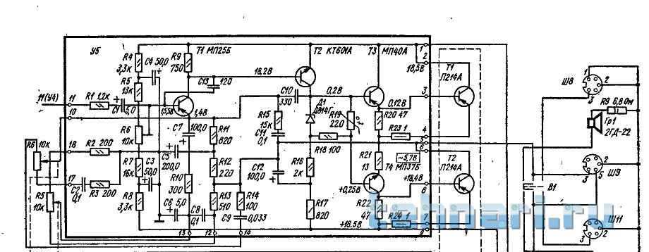 Понял только что предусилитель на кремнии ,а оконечник на германии. Хотя и то что написал слабо представляю.