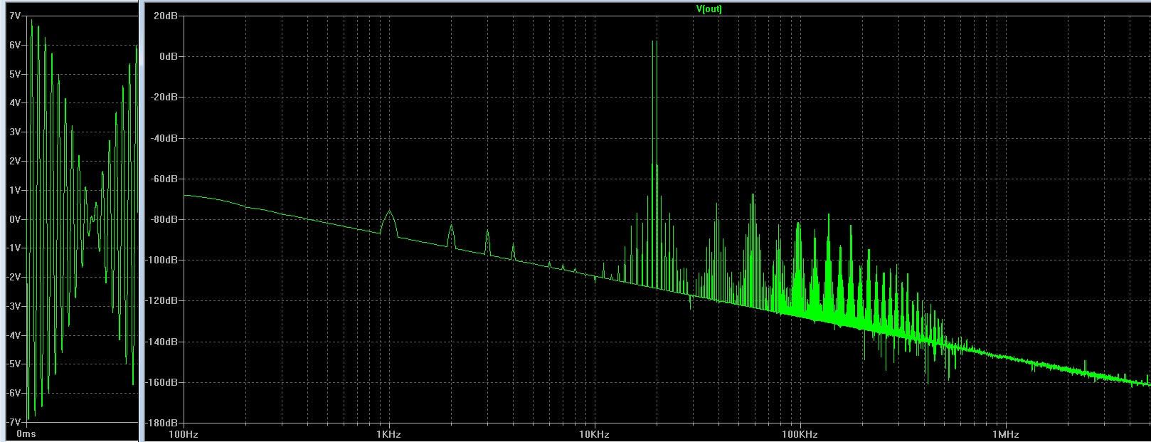 Итог битвы с зубчиками. Скоростной , токовый драйвер на ИТ в коллекторе драйвера свел проблему зубчика на нисходящей ветви синусоиды к еле заметной точечке выше 30 килогерц. Ниже чисто. Можно выдохнуть.