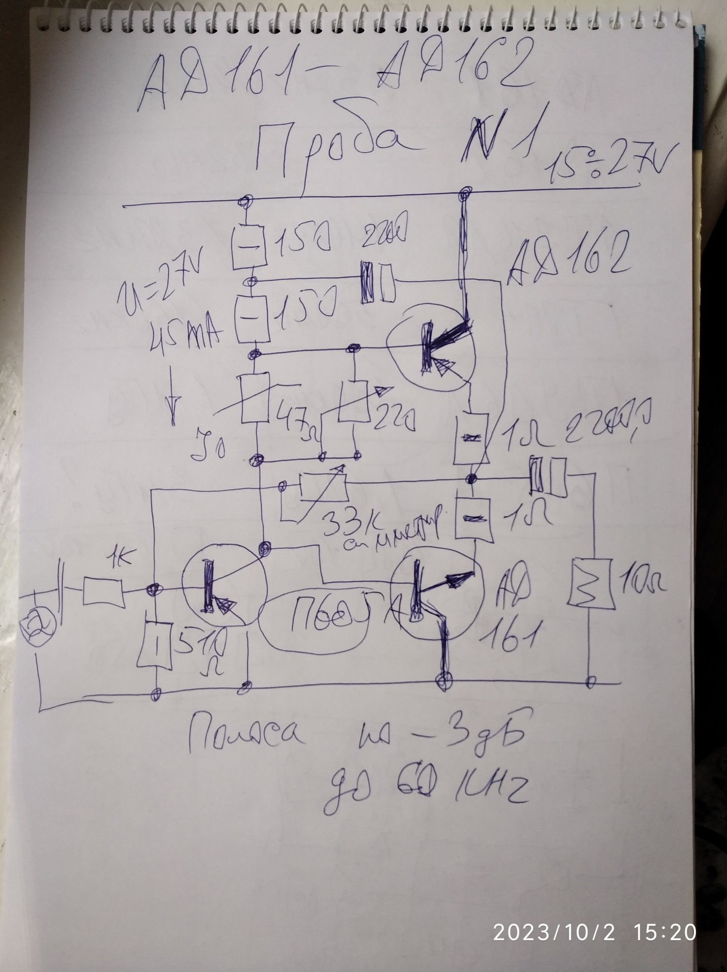 Входной 2SA970 , драйвер BD139 Филипс, серенький , внизу AD162 , вверху AD161. Питание достану из тумбочки, импульсник Минвелл. Он от 15 до 28в.