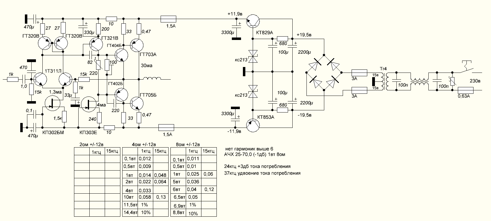 Схема- как в Аккорде. Драйверные и выходные транзисторы-кремний (и остальные-тоже))).