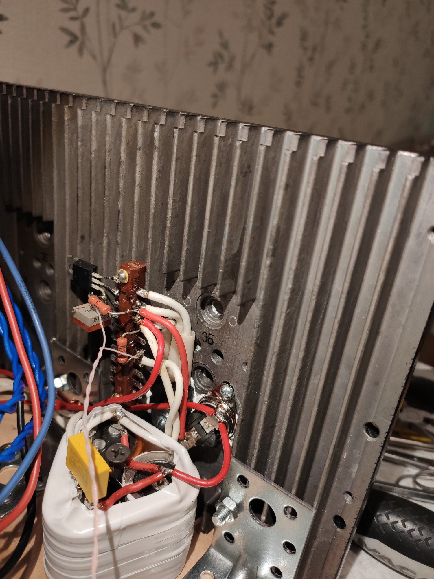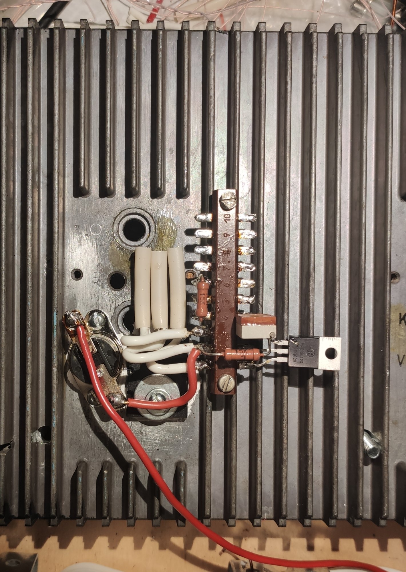 Надо это дело как-то перековать. Применение макетки здесь думаю излишне. Транзистор припаяю на транзистор, а проводочки к монтажной планке. Будет возможность в базу маленького транзистора добавить резистор и, возможно, ёмкости оттуда на другие выводы.
