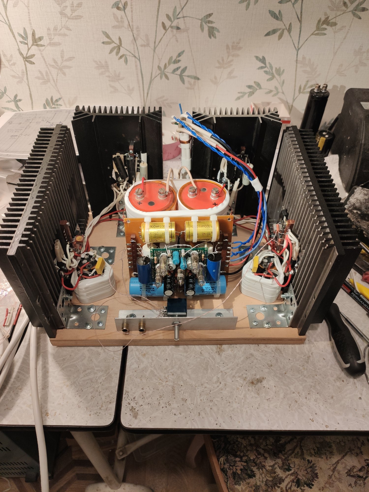 У меня несколько подвинулись дела с ВК в классе А. Вчера спаял оба канала без подключения входов и выходов. Там надо ещё закрепить немелкие разделительные конденсаторы РОЕ 82000.0 х 25 В и плату лампового предусилителя.