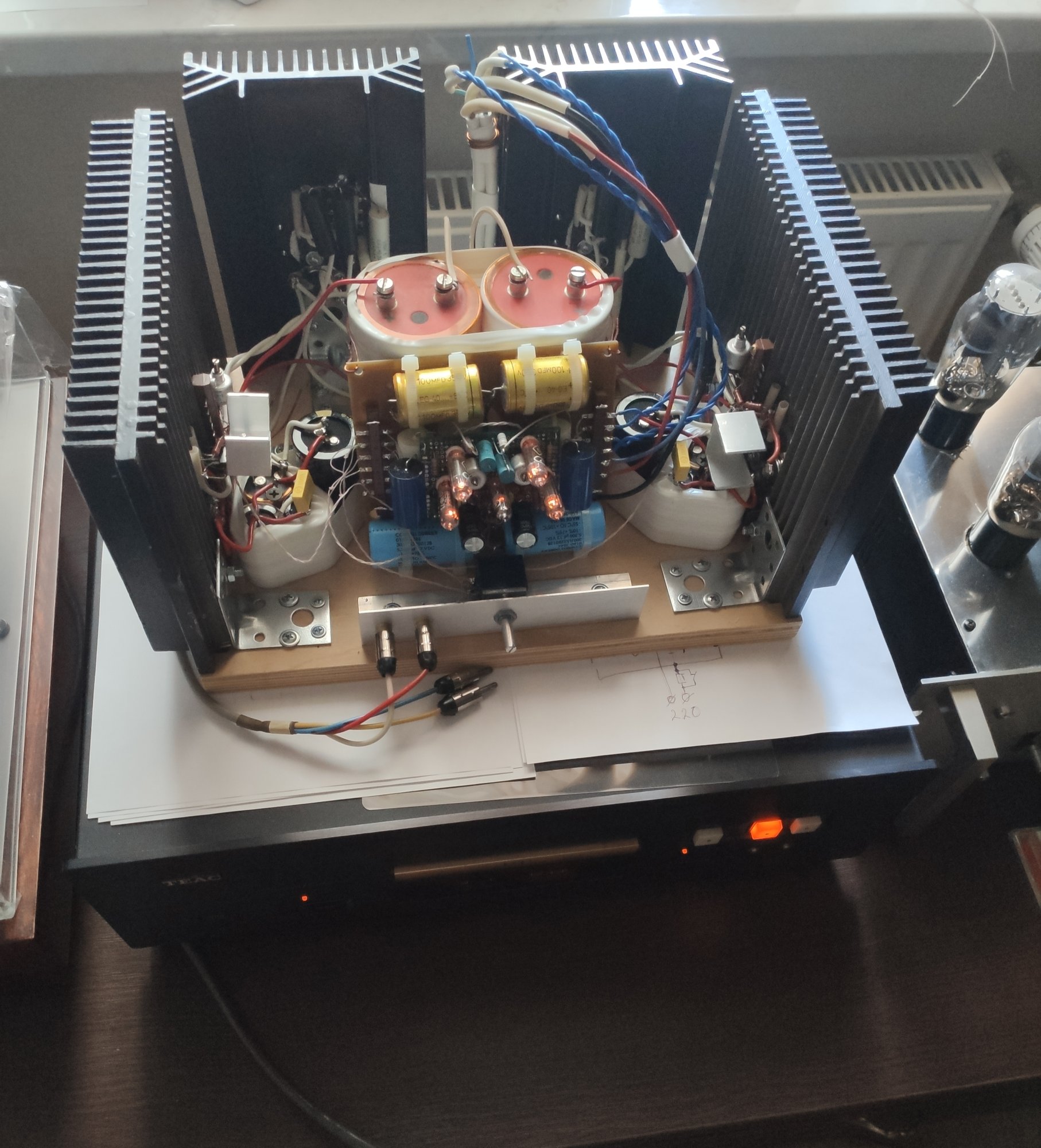 Жалею, что не сделал усилитель по схеме Сергея Васянина ещё 10 лет назад. Собирался же! Да нет, откладывал годами. В общем рад. Понятно, пока имеется кривой макет, и надо ещё поиграть с разными предами на разных лампах. Но это потом. Пока играет в таком виде: