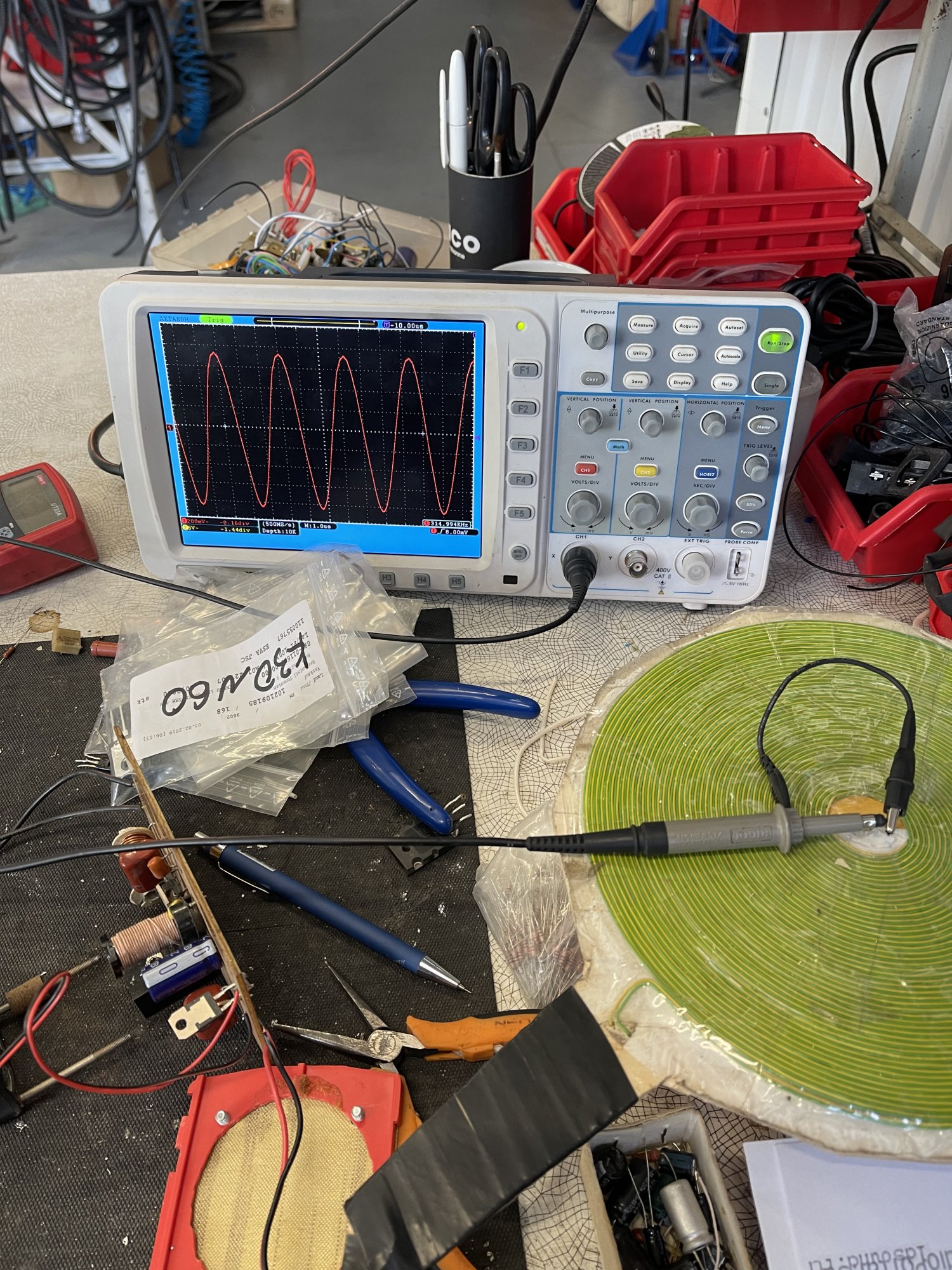 Собираюсь по Вашему методу сделать виток и измерить. Сейчас у меня примерно то же питание и такой же генератор, а максимальный ток у плоской катушки почти 1 Ампер. Действующее значение. Измерено осциллографом на резисторе 1 ом.
