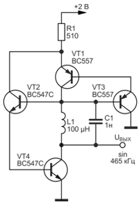 При питании от источника напряжением 6 В и токе потребления не более 4 мА, выдает синусоидальное напряжение с двойной амплитудой (пик-пик) до 1,4 В.