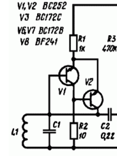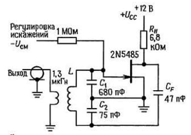 Важным преимуществом этого генератора является возможность использовать резонансные контуры практически с любым отношением L/C. Так, он одинаково устойчиво работает, если индуктивность катушки L1 изменяется в пределах от 50 мкГн до 100 мГн, а ёмкость конденсатора C1 - от 50 пФ до 5 мкФ. Например, при индуктивности L1 = 50 мкГ и ёмкости С1 = 5 мкФ генерируемая частота будет около 10 кГц, а при той же индуктивности и C1 = 50 пФ - 3,2 МГц.